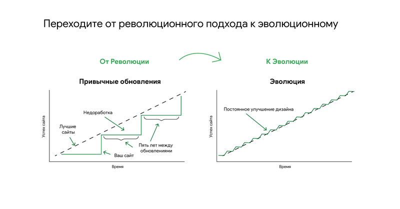 Вместо того, чтобы каждые пять лет делать редизайн сайта, где будет сложно подтвердить успех относительно старой версии, можно постоянно улучшать свой продукт через тесты. Внося небольшие, но важные изменения, компания сможет оставаться эффективной, не теряя позиций на рынке.