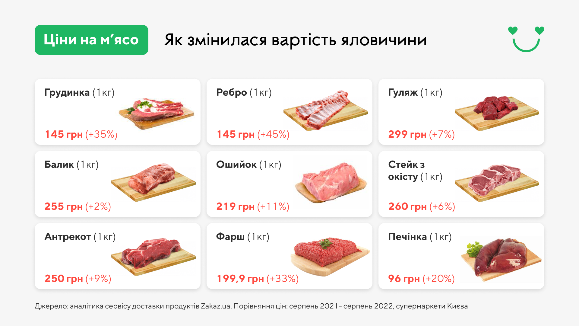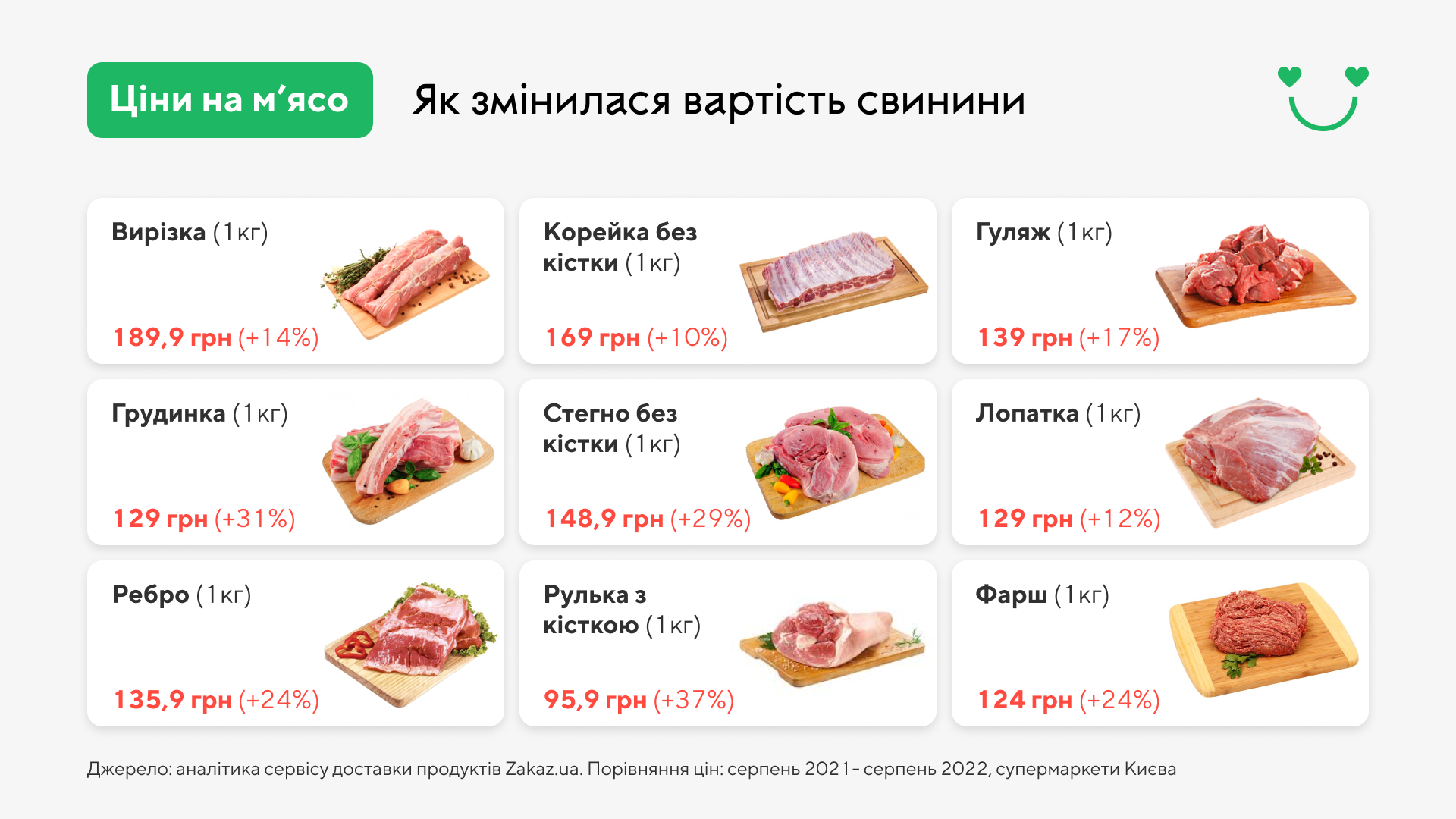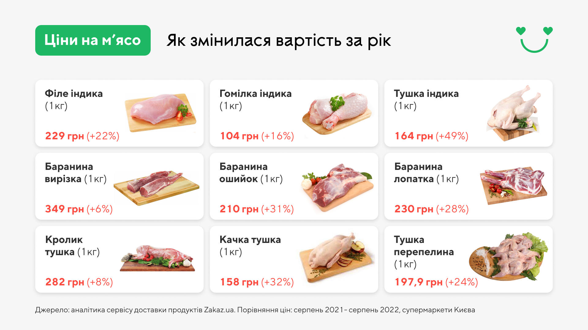 Как за год изменились цены на мясо – инфографика Zakaz.ua
