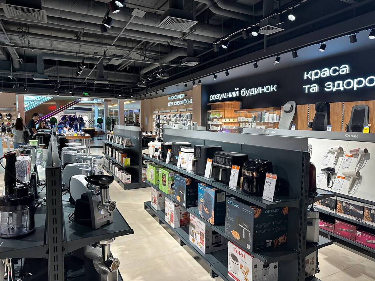 В новом киевском магазине в ТРЦ Проспект по адресу ул. Гната Хоткевича, 1 В клиентов, как всегда, ждет большой выбор техники и гаджетов от ведущих мировых брендов: смартфоны, ноутбуки, мелкая бытовая техника и расширенная зона с телевизорами.