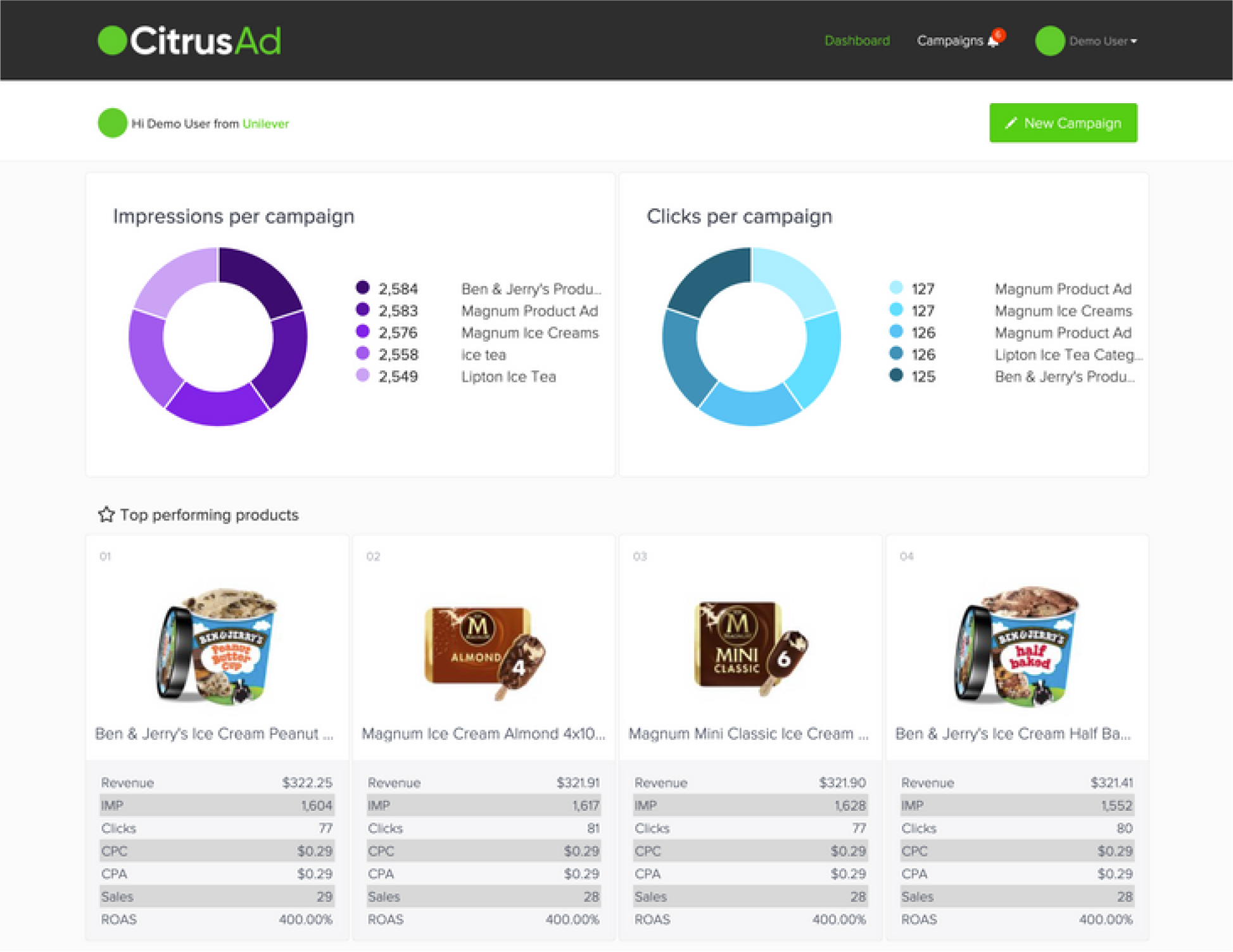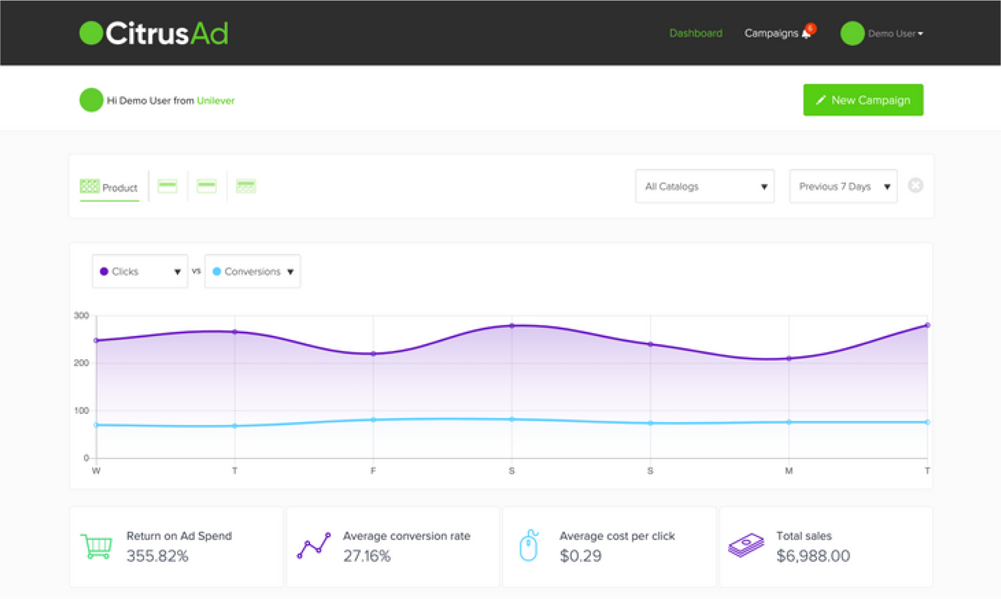 Прозрачность и детальная аналитика — одни из ключевых преимуществ работы с ритейл медиа платформой CitrusAd. Так рекламодатели и маркетологи могут в кабинете платформы фактически в онлайн режиме видеть и отслеживать ключевые показатели как по самой рекламной кампании (imp/clicks/ctr/cpm/cpc), так и по ее эффективности (продажи/доход/ROAS).
