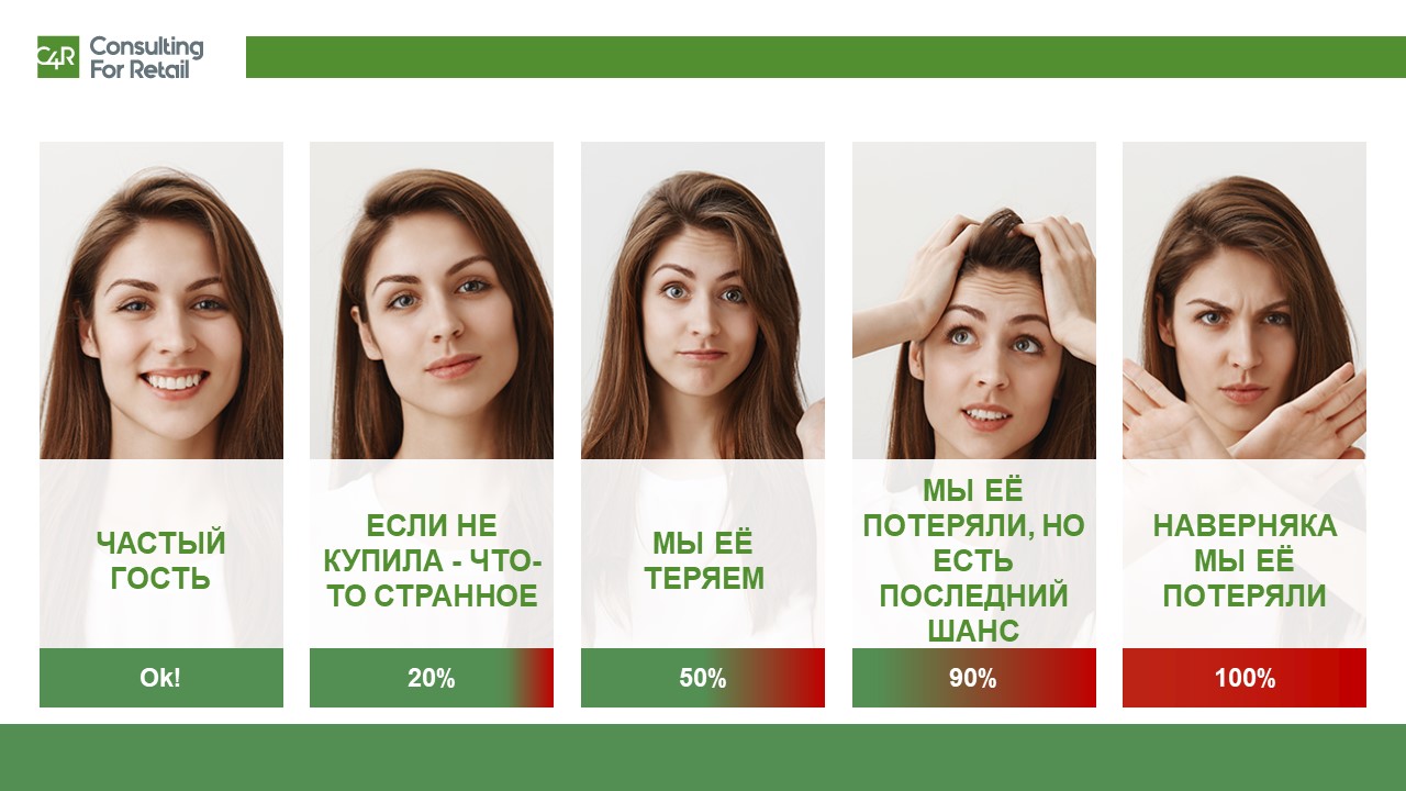 Наконец, может наступить момент, когда покупателю становится откровенно скучно и он готов расстаться с ритейлером. В этот момент важно правильно выстроить коммуникацию, чтобы использовать последний шанс задержать покупателя.