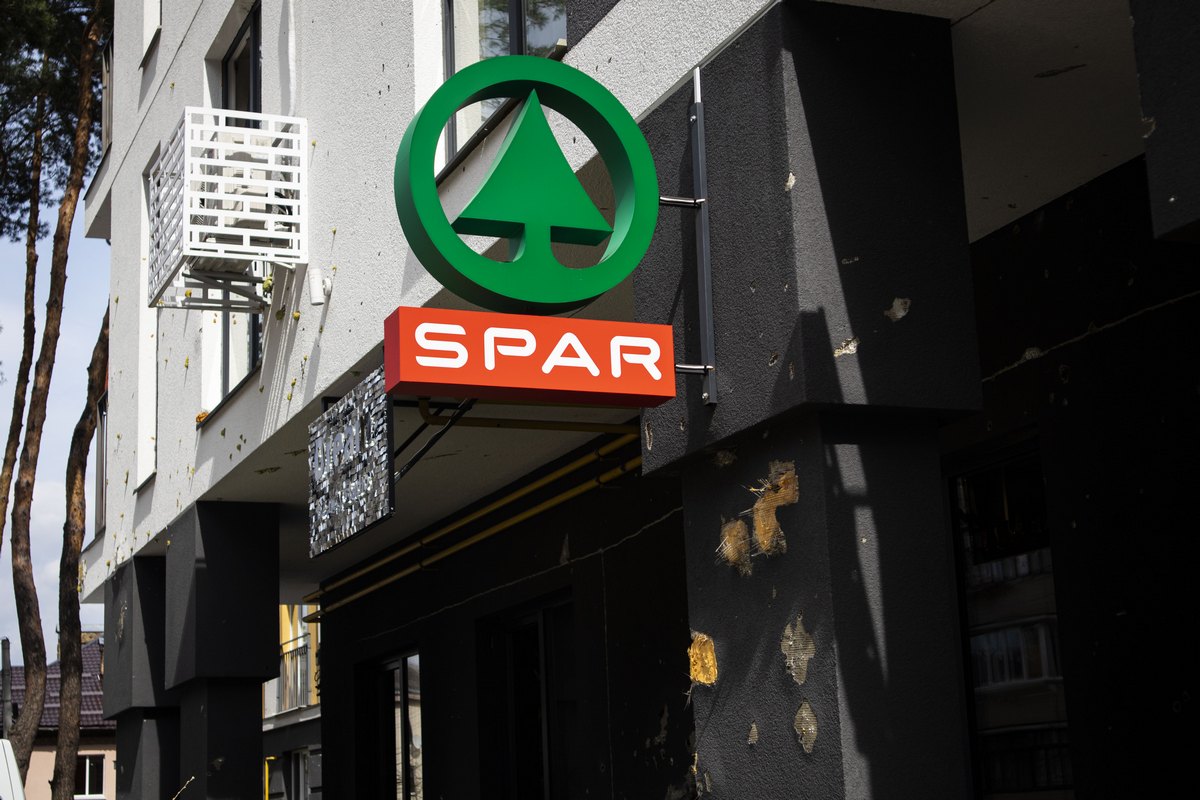 В конце марта в Ирпене в пострадавшем от боевых действий районе открылся новый магазин SPAR. Сейчас даже на фасаде видны следы от обломков.