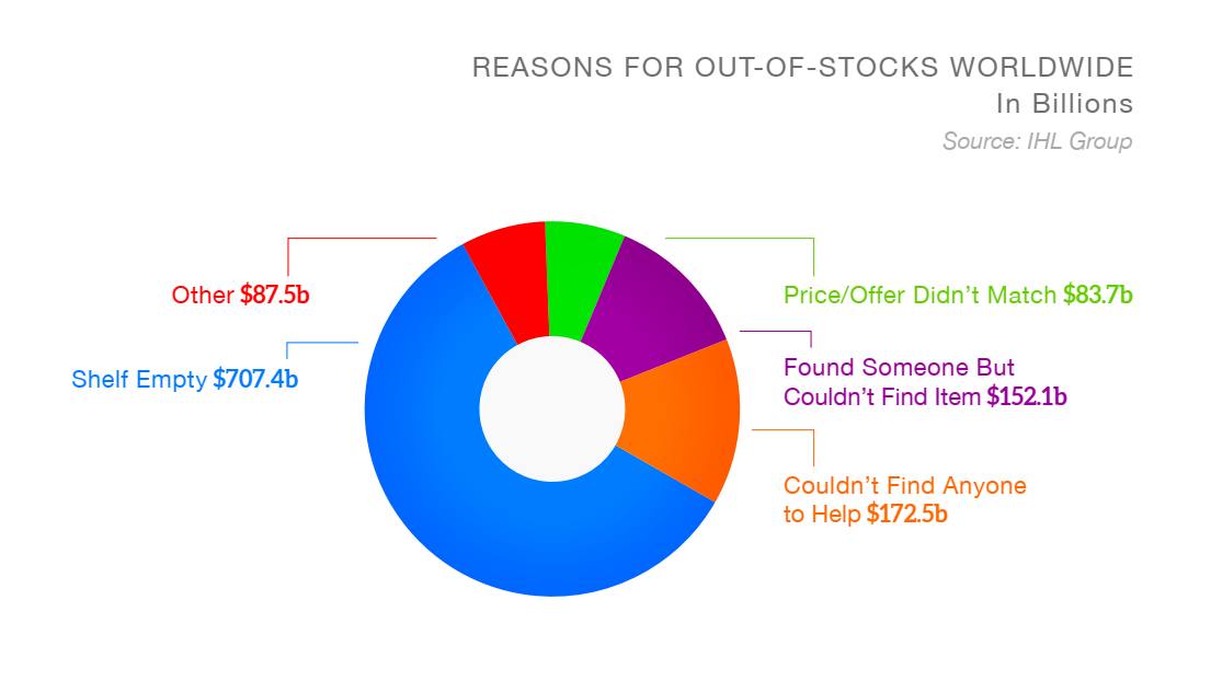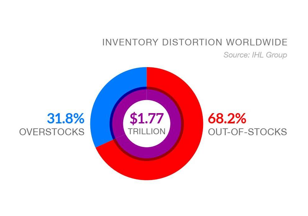 Как отмечают в совем отчете «Inventory Distortion – The Good, the Bad, the Ugly» специалисты консалтинговой компании IHL Group, искажение и несоответствие товарных запасов во всем мире – это серьезная проблема, вызывающая значительные финансовые потери и операционные проблемы у ритейлеров. Под искажением эксперты компании IHL Group рассматривают отсутствие товара на складе, когда покупатель не может приобрести то, за чем пришел, а также проблемы с точки зрения продавца, когда чрезмерные запасы ритейлеров вынуждены распродавать со значительными скидками или в дополнение к другим товарам.