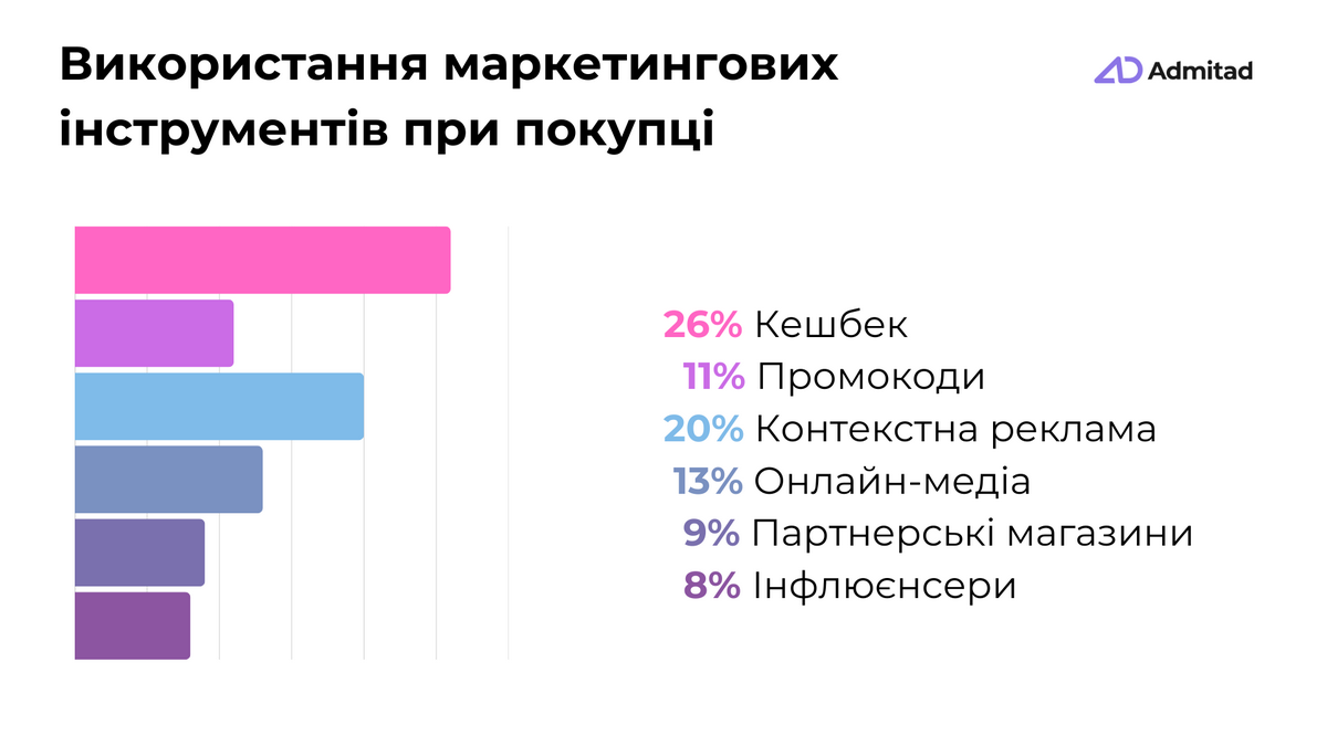 Когда дело доходило до выбора подарка, более 20% украинцев обращали внимание на контекстную рекламу. Рекомендации онлайн-медиа привели бизнесам более 13% клиентов, а 9% покупателей искали вдохновение в партнерских онлайн-магазинах, собирающих лучшие предложения от разных брендов. Еще 8% украинцев выбирали подарки, руководствуясь советами блоггеров и инфлюэнсеров.
