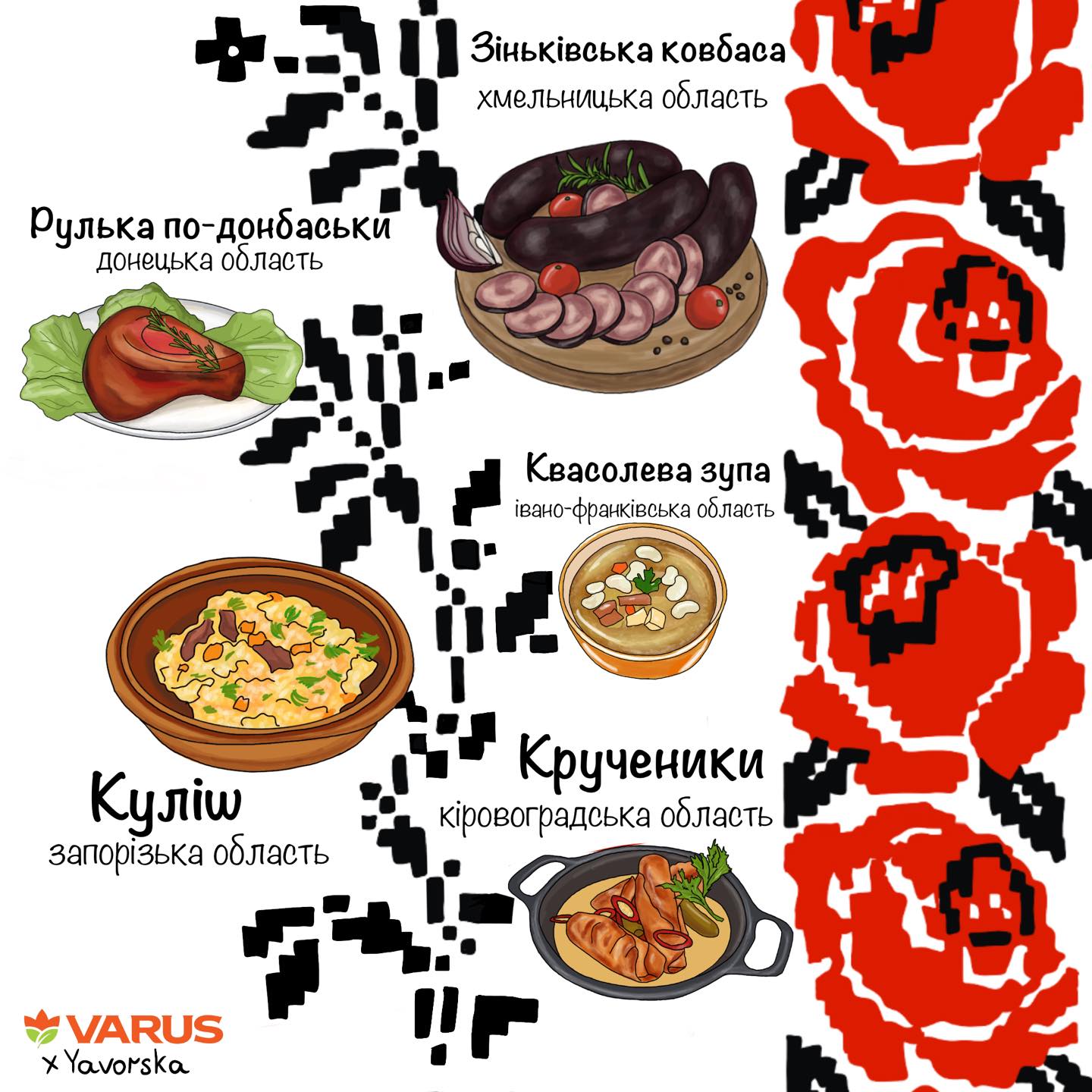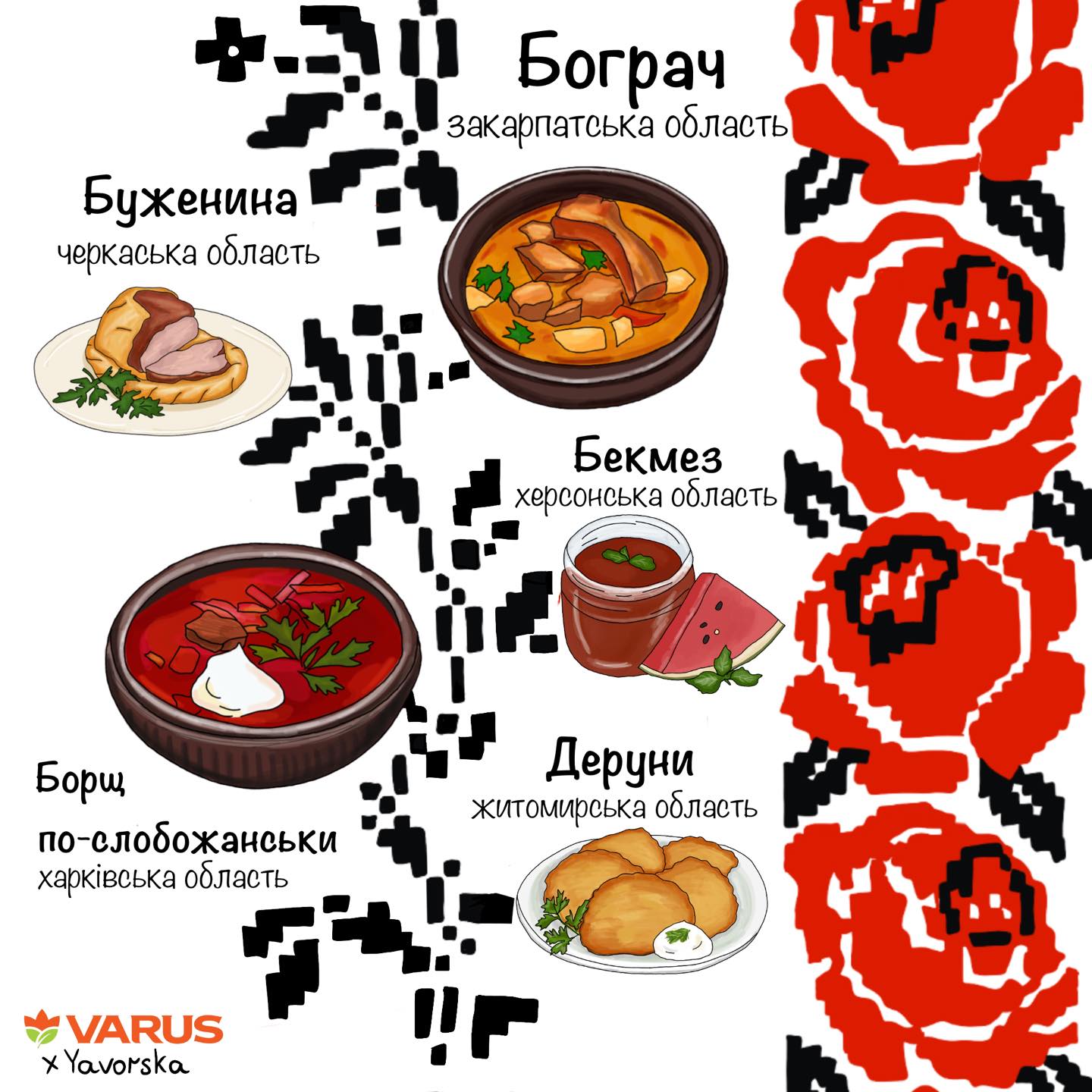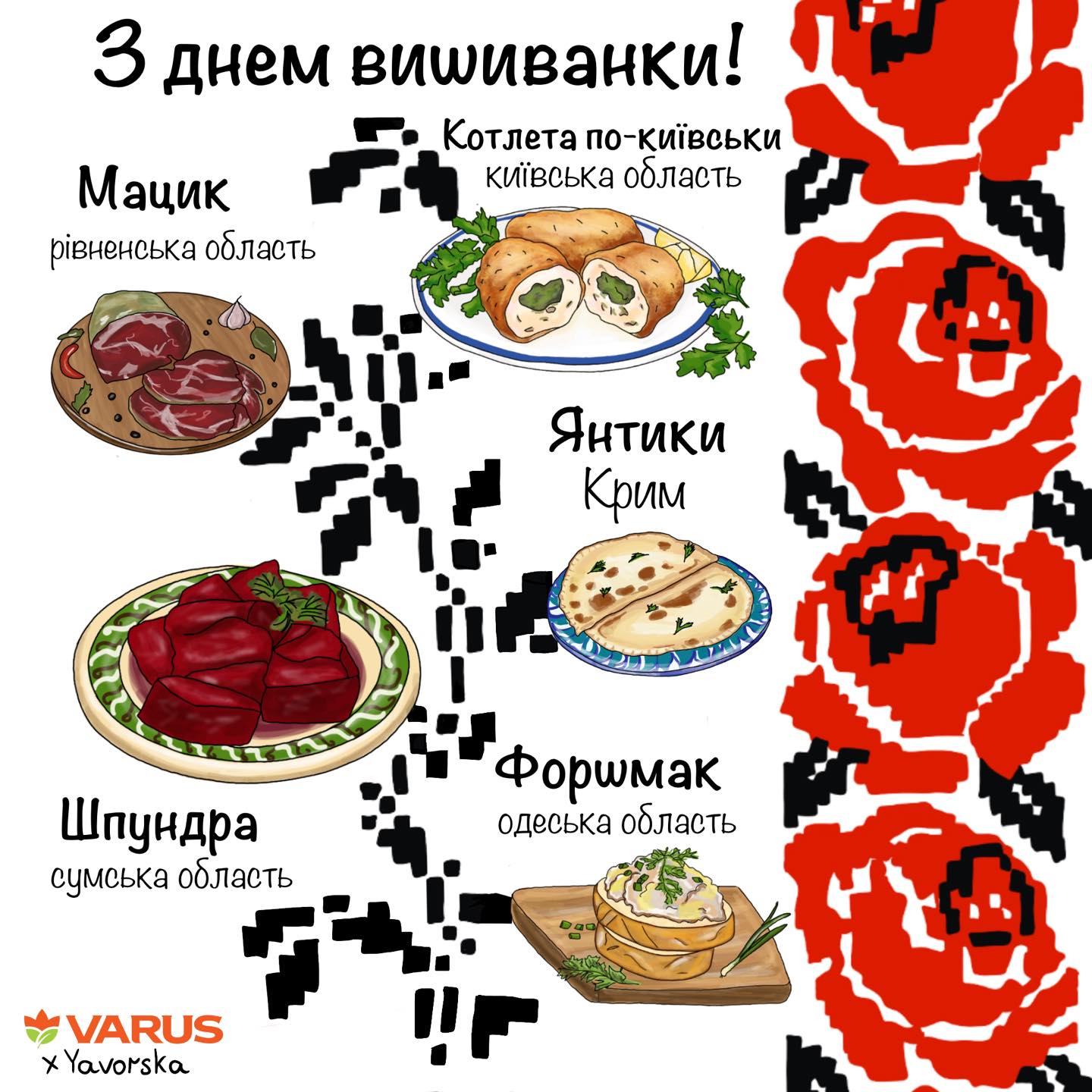 В Varus решили по случаю напомнить о блюдах, которыми гордится тот или иной регион Украины. “Вышиванка – это древний оберег, символ свободы и несгибаемости украинского народа. В честь Дня вышиванки мы создали орнамент из ДНК украинской кухни: объединили блюда-визитки каждой области, создав уникальный кулинарный орнамент, символизирующий единение Украины в своей истории, обычаях и блюдах. Ветви и листья в орнаменте вышиванок означают чистоту и процветание рода. Мы же желаем Украине и украинцам процветания нашего государства .Красные маки — символ силы, защищающей от зла, с которым сейчас борются наши защитники и весь цивилизованный мир. и ежедневно. Поэтому носите вышиванку с гордостью сегодня и каждый день”, – призывали