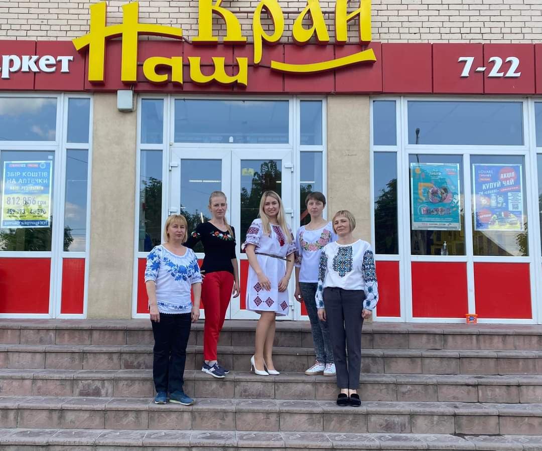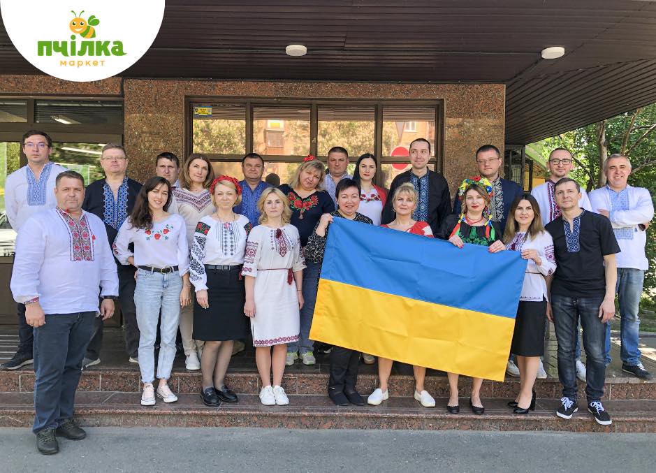 “Надевать вышиванку – это словно погружаться в глубины истории нашего народа. Команда Пчелки маркет не изменяет украинским традициям и сегодня вместе с вами отмечает День вышиванки”, – поделились фотографией команды в Пчелка маркет.