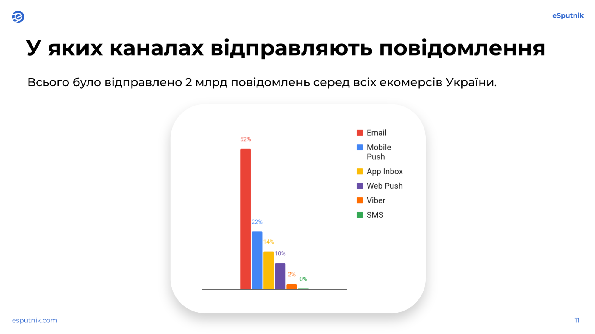 Анализ охватил почти 900 компаний, которые пользуются платформой eSputnik. Так, в прошлом году во время высокого сезона они отправили более 2 миллиардов маркетинговых сообщений. Это позволило сделать обоснованные выводы и подготовить рекомендации для будущих кампаний. Ожидается, что объемы коммуникаций в этом году будут еще выше.