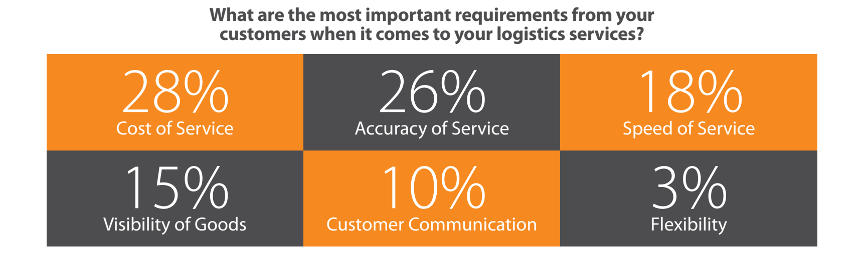 Неточное прогнозирование способствует увеличению затрат: 17% компаний сообщили, что планирование часто противоречит возможному исполнению. 43% респондентов заявили, что их текущие системы планирования не были хорошо интегрированы с другими системами, «выявляя неэффективность операций, требующих улучшения», – пишут исследователи. Респонденты назвали стоимость (28%) и точность (26%) наиболее важными аспектами своего логистического партнерства.