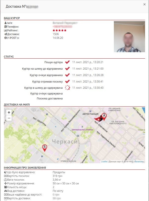 - Контроль за передвижением курьера. Перемещение курьера отображается онлайн в вашем личном кабинете. Также и получатель видит всю информацию по доставке с помощью Viber или SMS.