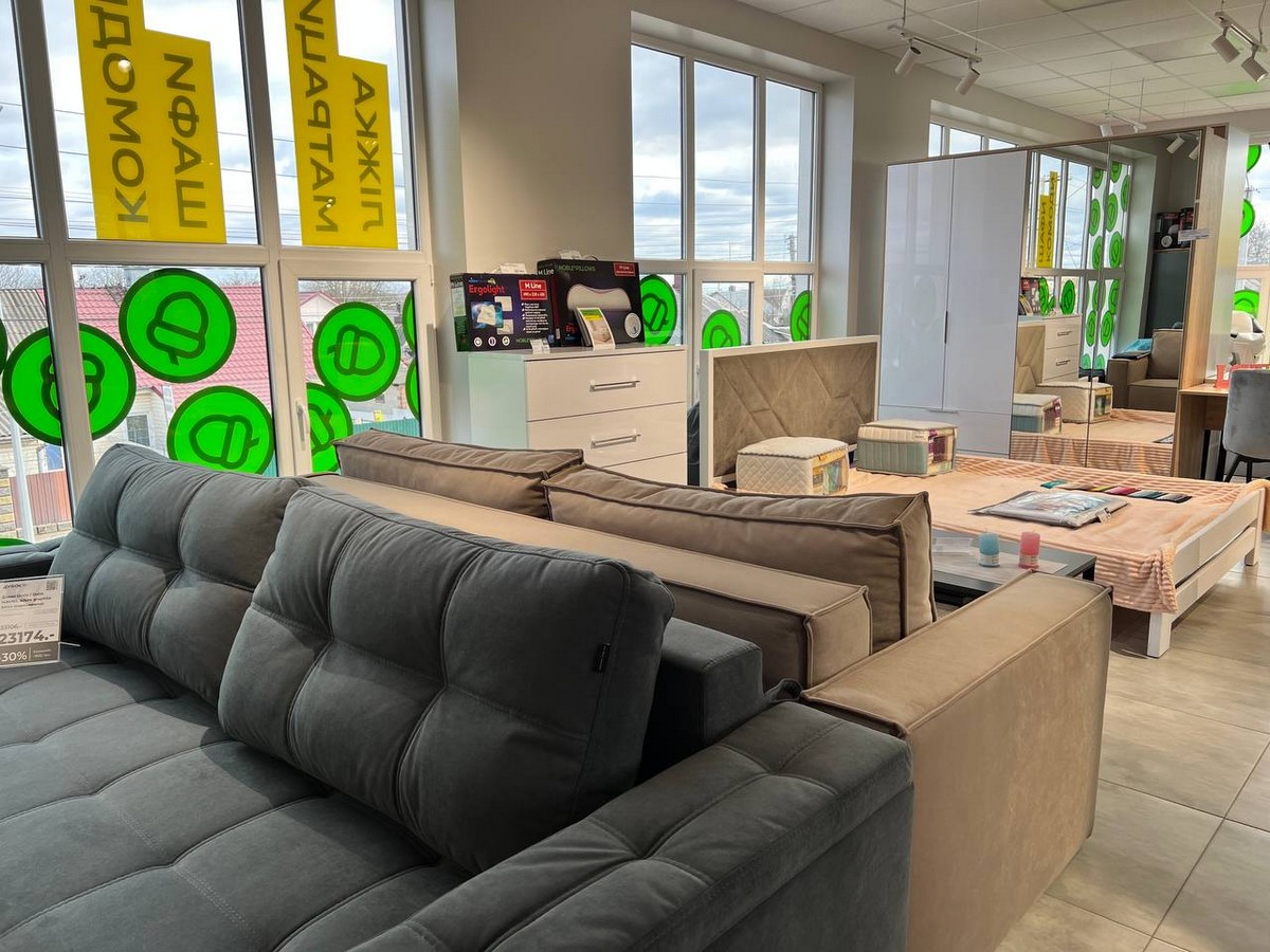 А именно: обновили вывеску – теперь она из акрила «День-ночь»: днем черный, а ночью светится белым, увеличили площадь брендированной поклейки – теперь салон заметен издалека, обновили витрины. Благодаря этому горожане могут легче идентифицировать мебельный магазин.