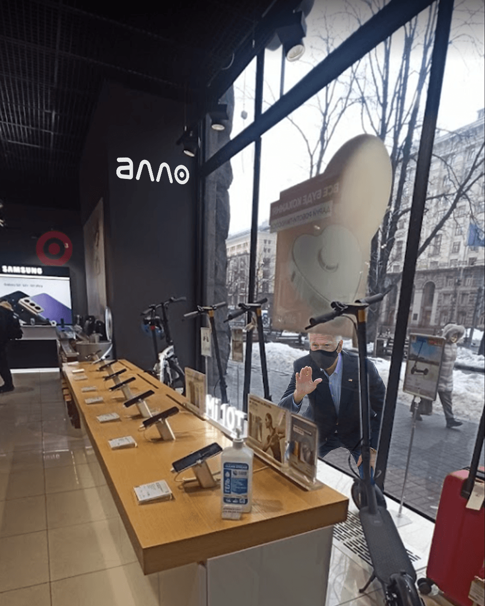 “Алло, Байден в Киеве!”, – написали на Facebook национального маркетплейса Алло и выложили изображение, в которое можно и поверить, что это не фотошоп (на самом деле, нет, но хорошая попытка).
