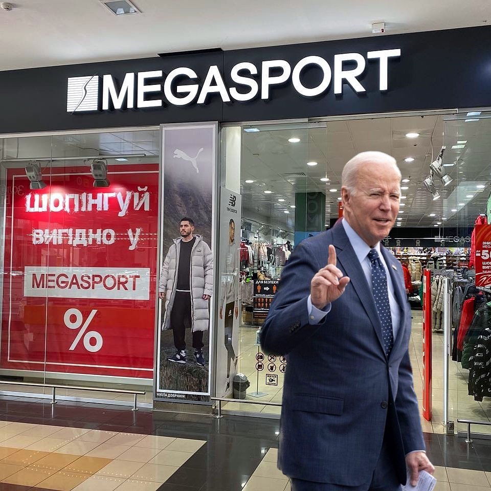 “Здесь Киев господин Байден посетил. Просил напомнить тебе об усилении скидок до -50%. Не упусти, ведь они будут действовать до 28 февраля”, – сообразили запустить специальное акционное предложение в Megasport.