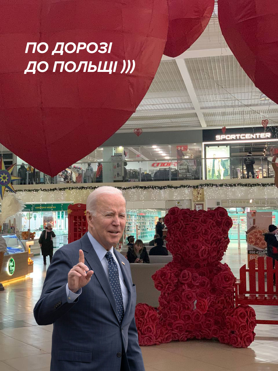 “По дороге в Польшу”, – подытожили визит американского Президента в Украину в ТРЦ Подоляны.