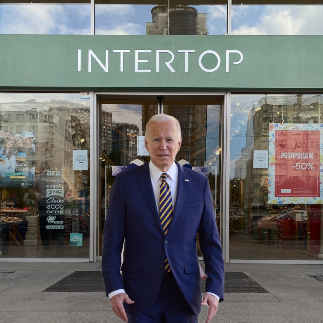 “Байден замечен на Брестском проспекте. Залетел на финальную распродажу”, – признались в Intertop.
