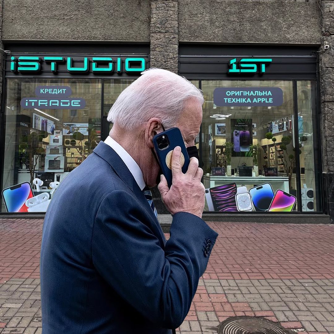 “Хейтеры скажут фотошоп, но мы поздравляем Джозефа Робинетта Байдена-младшего в Киеве уже сейчас”, – убедительно заявили в сети магазинов iStudio.
