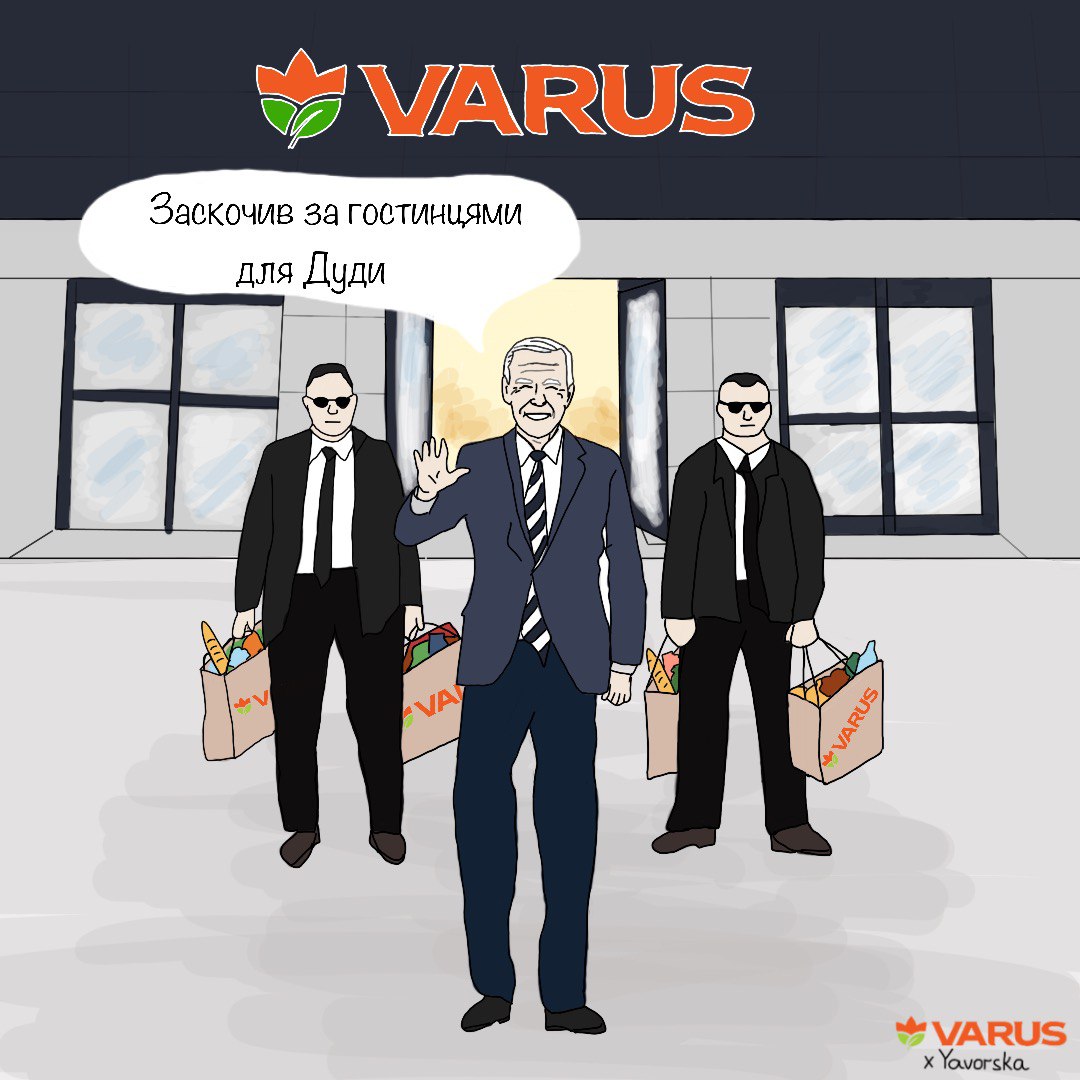 “Ходят слухи, что Байден заехал за вкусным в Varus”, – оперативно отрисовали ситуатив в сети супермаркетов Varus.