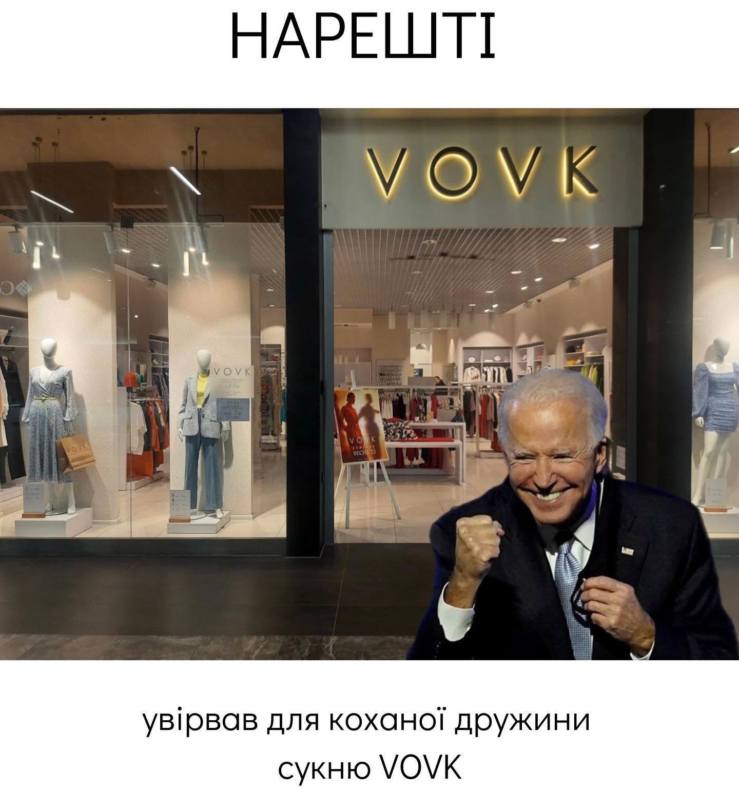 “Наконец урвал для любимой жены платье VOVK“, – выдали мем в украинской сети fashion-магазинов.