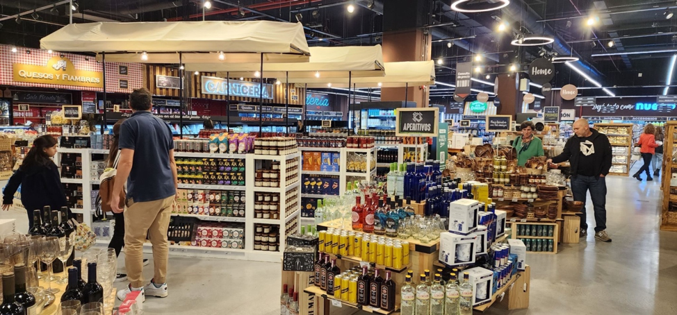 Так, меня поразил пример из аргентинского супермаркета, где разноформатное оборудование стоит не в одну линию, а как бы хаотично и слегка небрежно, выкладка смешанная – ящики большие и мелкие, вертикальные и горизонтальные, ровные и под наклоном – все это создает “жизнь” и динамику.