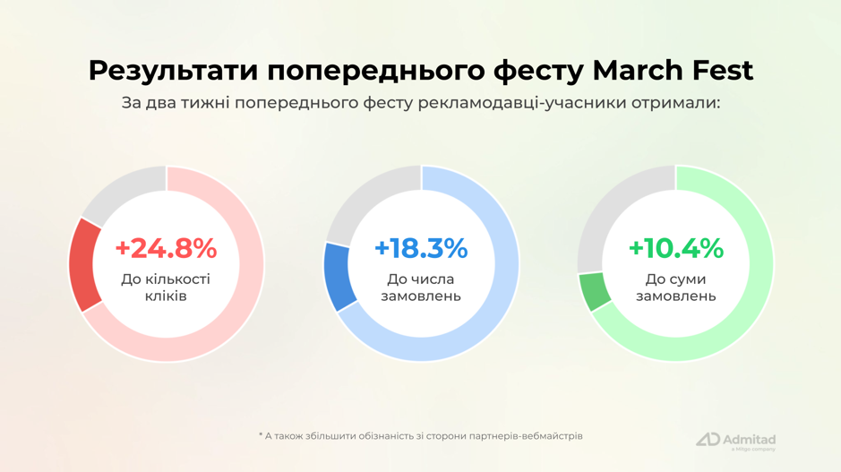Также, платформа партнерского маркетинга на постоянной основе проводит внутренние промоакции для своих брендов-партнеров, привлекая к сотрудничеству новых специалистов. Таким образом, Admitad устраивает внутренние марафоны и фестивали, где бренды предлагают особые условия для партнеров, тем самым увеличивая заинтересованность специалистов к своим партнерским программам. И взамен, получают высокую вовлеченность покупателей и увеличивают продажи.