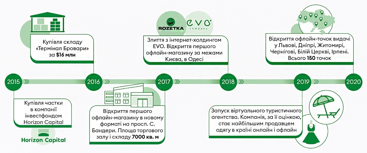 Семейный бизнес перерос свои рамки летом 2015 года. Ирина и Владислав были полными владельцами Rozetka, хотя, по словам Чечеткина, своих долей они не оформляли. Это пришлось сделать после того, как долю в Rozetka купил инвестфонд Horizon Capital. С его приходом в Rozetka появился совет директоров, который принимает инвестиционные решения. В него входят Чечеткин, представители от Horizon, а также от интернет-холдинга EVO Group, который основали Николай Палиенко, Денис Горовой и Тарас Мурашко. EVO, управляющий вторым после Rozetka маркетплейсом Prom.ua и еще рядом нишевых e-commerce-проектов, вошел в состав Rozetka осенью 2018 года.