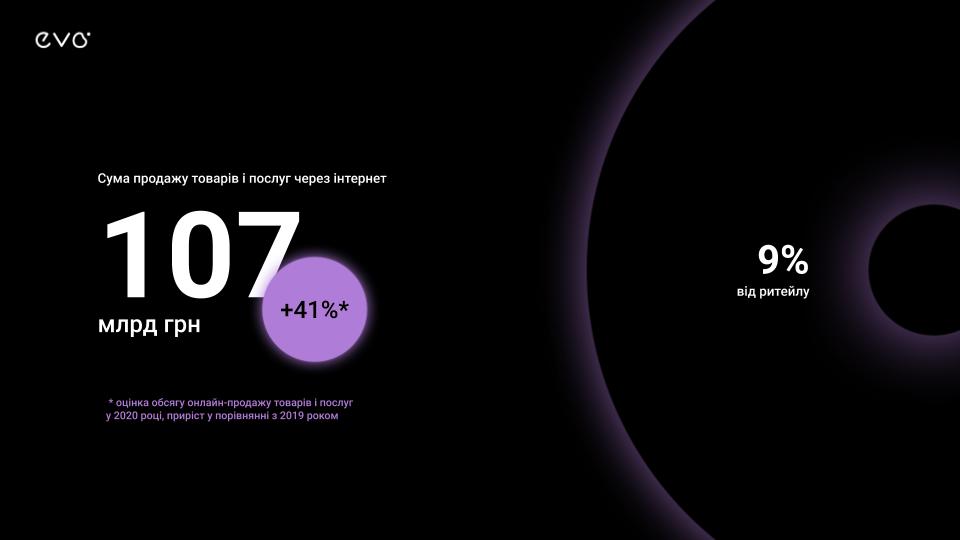 По оценкам группы компаний EVO, в 2020 году украинцы приобрели через интернет товаров и услуг на сумму 107 млрд грн.