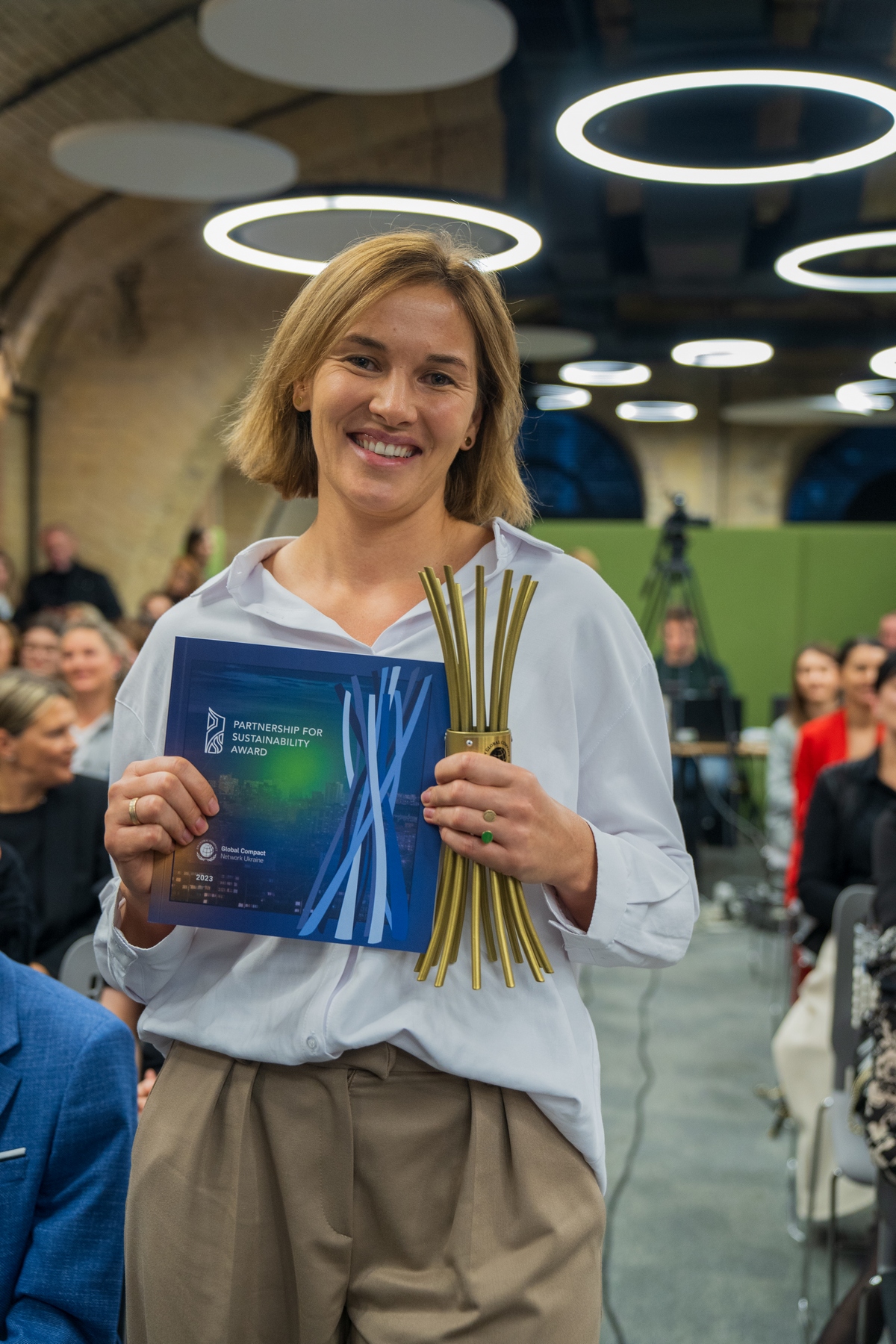 Награду, символизирующую единение бизнеса, общественного сектора и государства, вручила Елена Фроляк, шеф-редактор Факты ICTV, посол экологического направления ГД ООН в Украине.