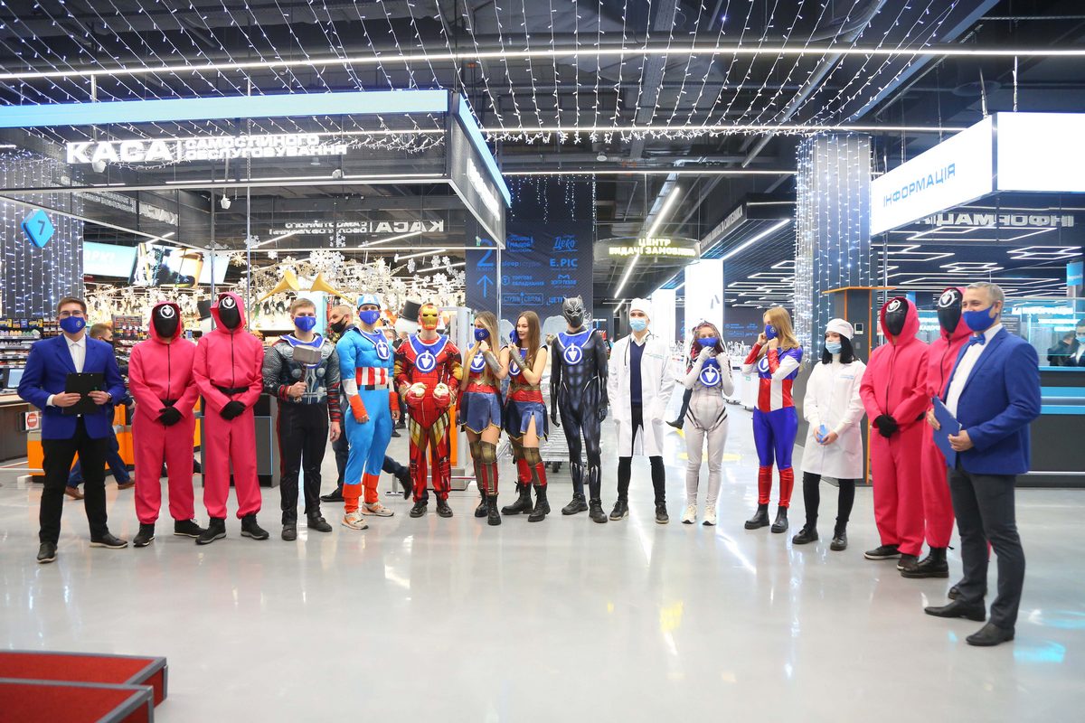 В хэллоуинский уикенд, 30-31 октября, Эпицентр провел масштабное стилизованное открытие нового торгового центра с участием героев популярных кинолент. Среди самых узнаваемых персонажей открытия были супергерои комиксов Marvel и DC, а также рефери турнира из нашумевшего сериала “Игра в кальмара” от Netflix. Новый объект стал первым для сети в Киеве с 2018 года. Как проходило открытие и как выглядит новый двухэтажный Эпицентр, расположенный в третьей очереди крупнейшего торгово-развлекательного центра страны Blockbuster Mall – в материале RAU.