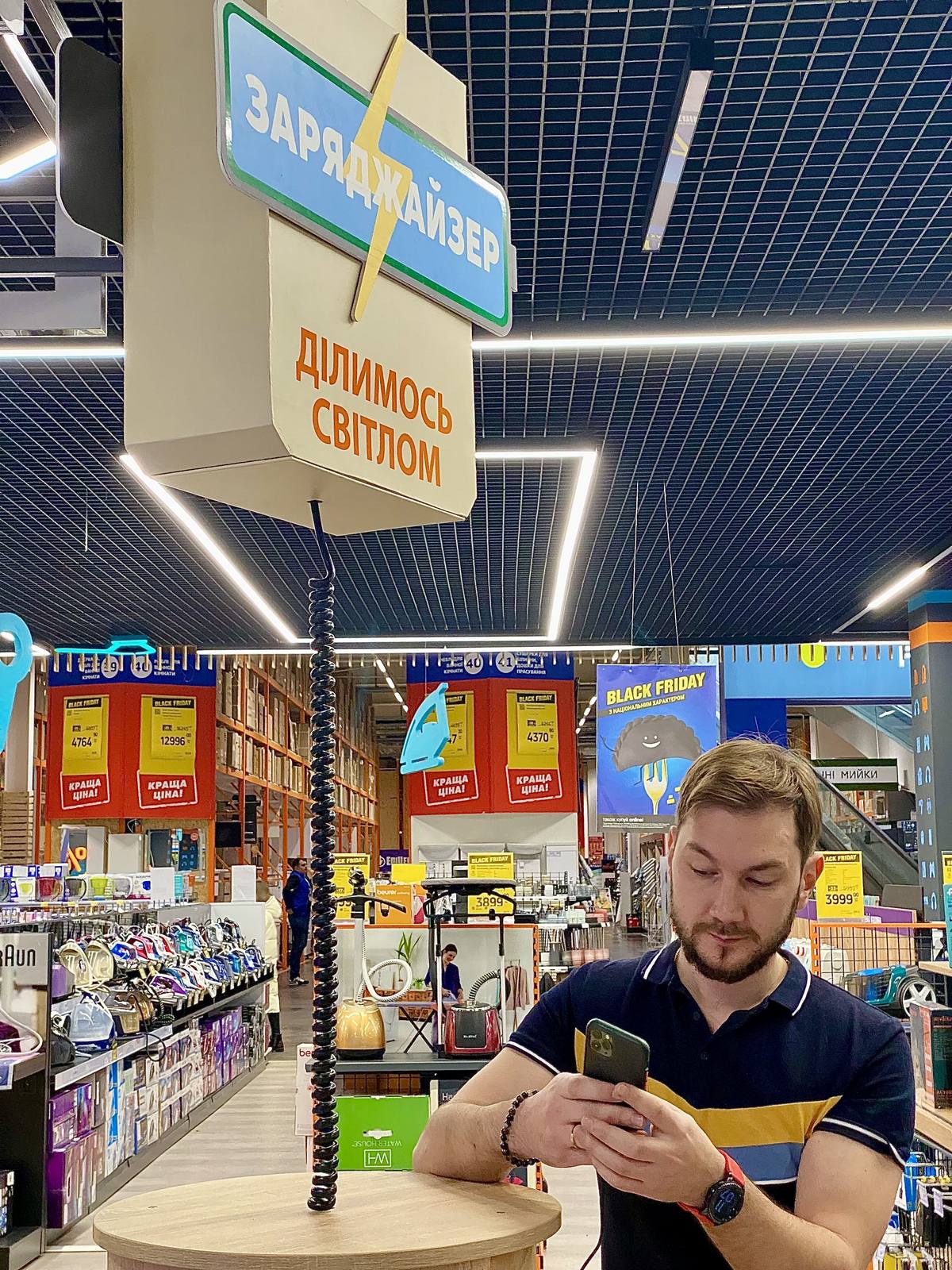 Для поддержки украинцев в условиях энергетического кризиса сеть ТЦ Эпицентр запустила проект “Делимся светом”. В торговых центрах компании по всей стране установлены станции подзарядки гаджетов “Заряджайзеры”.
