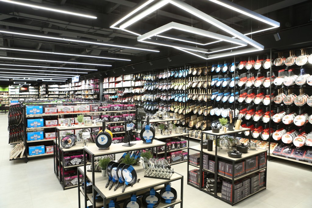 На торговой площади почти 3000 кв. м представлен широкий ассортимент товаров для дома: более 10 000 артикулов посуды, домашнего текстиля и декора.