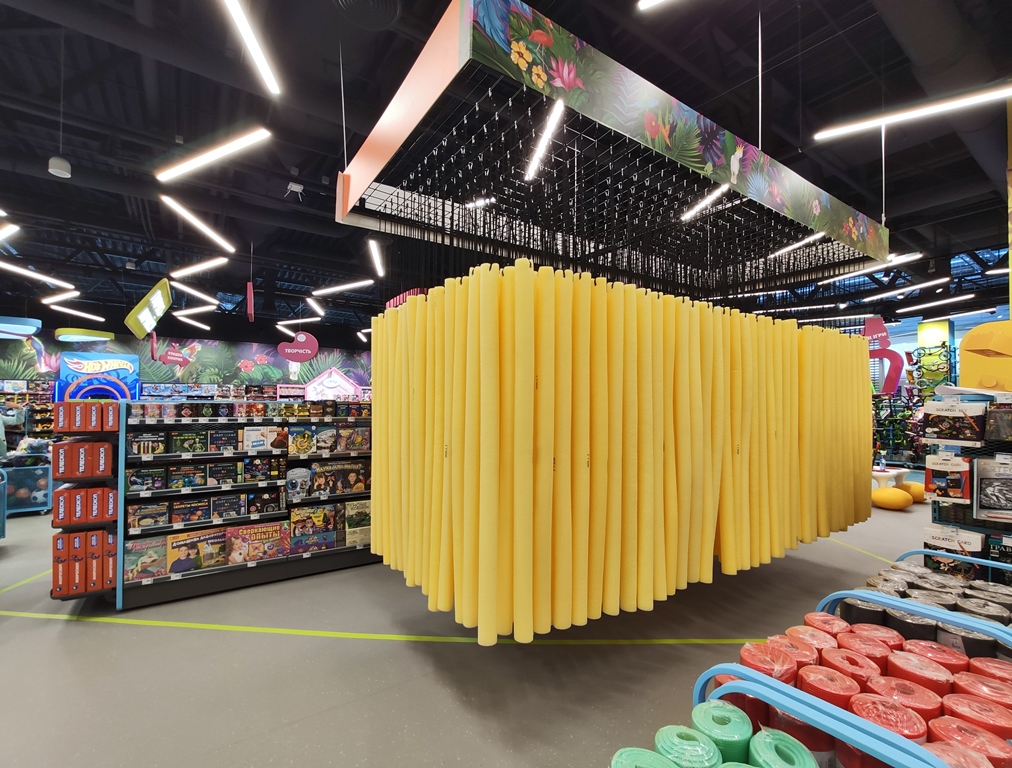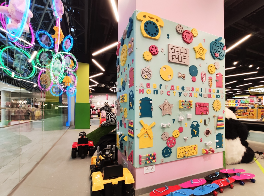 Для удобства покупателей обустроены бренд-зоны мировых производителей игрушек Lego, Barbie, Hot Wheels, Battat, а также отдельная бренд-зона с собственными торговыми марками сети – Bambinelli (0-3 года) и Luna Kids (3+ года). Согласно трендам, увеличена зона товаров для развития, творчества и интерактивных игрушек.