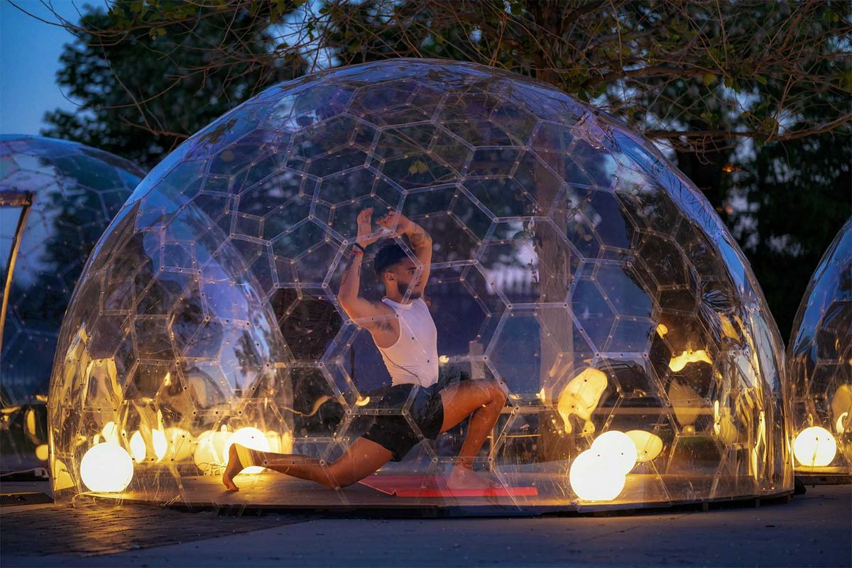 К примеру, студия Lmnts Outdoor построила 50 индивидуальных куполов для безопасных занятий на улице «горячей» йогой (при температуре равной температуре человеческого тела).