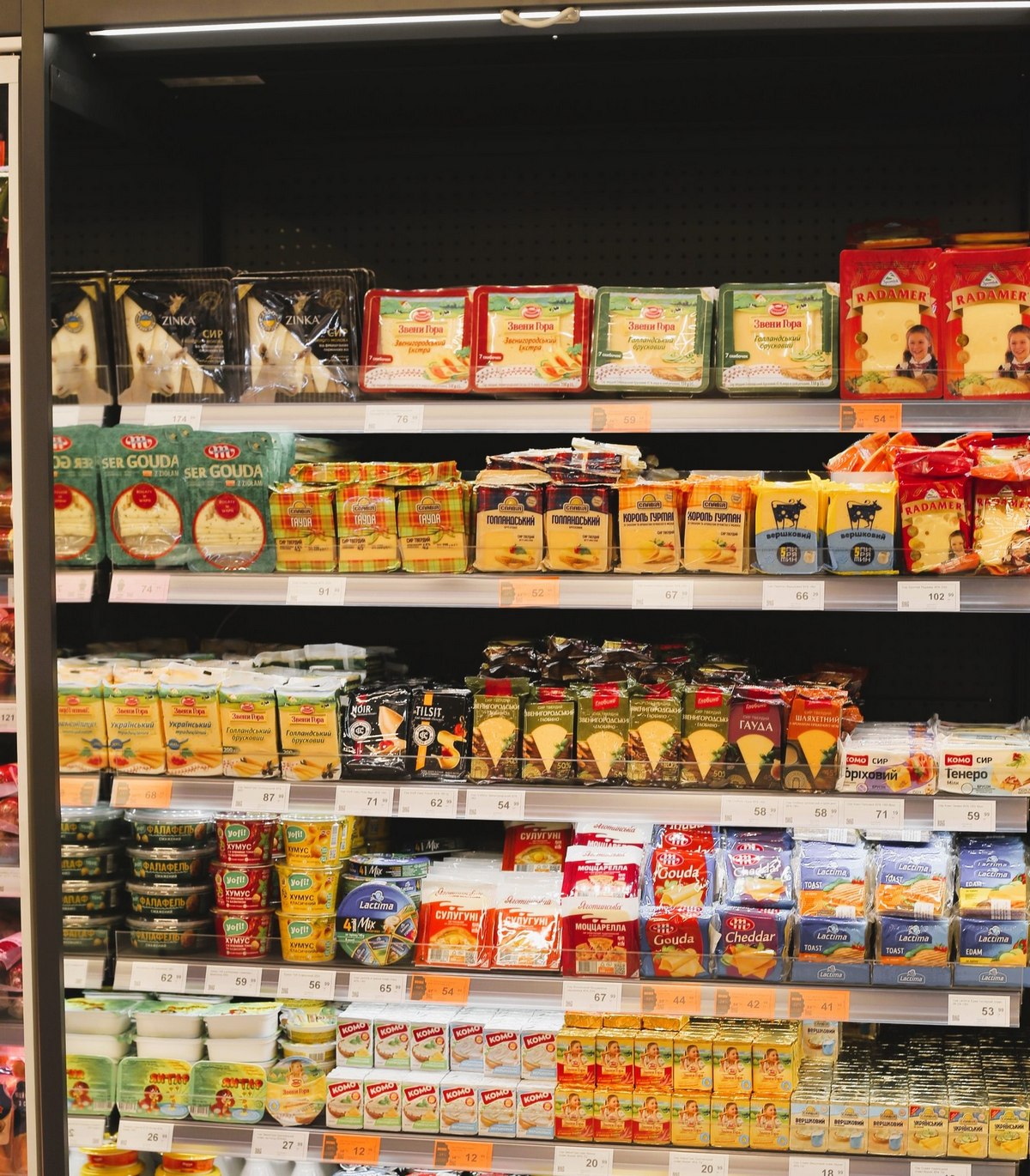 В магазине есть собственное производство – пекарня со свежеиспеченным хлебом и пиццей, а также горячая продукция гриль. Витрины удивляют широким выбором свежего мяса, бакалеи, колбас и сыров.