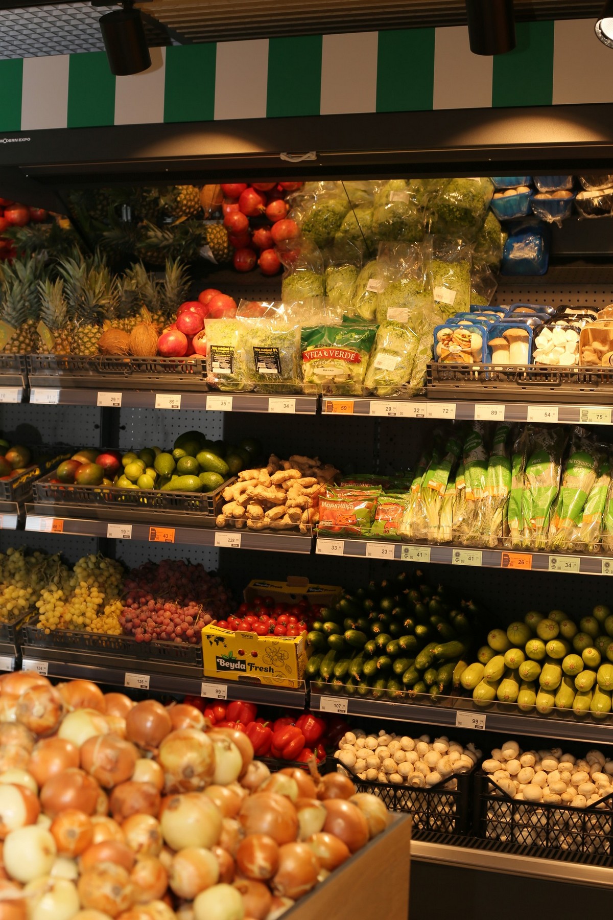В магазине также большой выбор овощей, кондитерских изделий и особенно выпечки.