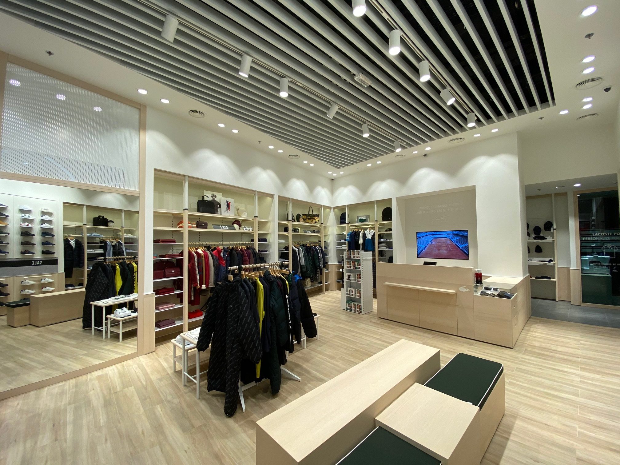 Французский бренд Lacoste открыл флагманский бутик в новом формате Le Club в киевском ТРЦ River Mall. Магазин площадью 175 кв. м стал уже 11-м в торговой сети бренда в Украине. Фасад бутика украшен семиметровой инсталляцией из дерева с изображением 3D-крокодила. А с порога посетители Le Club будто попадают на теннисный корт. Элементы, напоминающие об истории Lacoste, расположены по всему помещению.