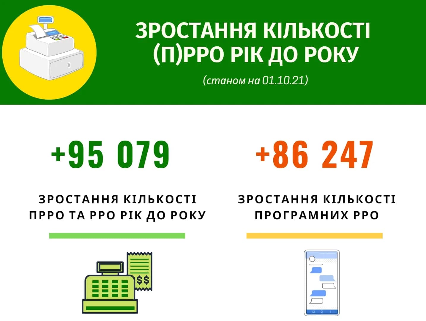 Количество регистраторов расчетных операций в Украине, включая программные РРО, за 10 месяцев 2021 года выросло на 29% по сравнению с соответствующим периодом 2020-го.