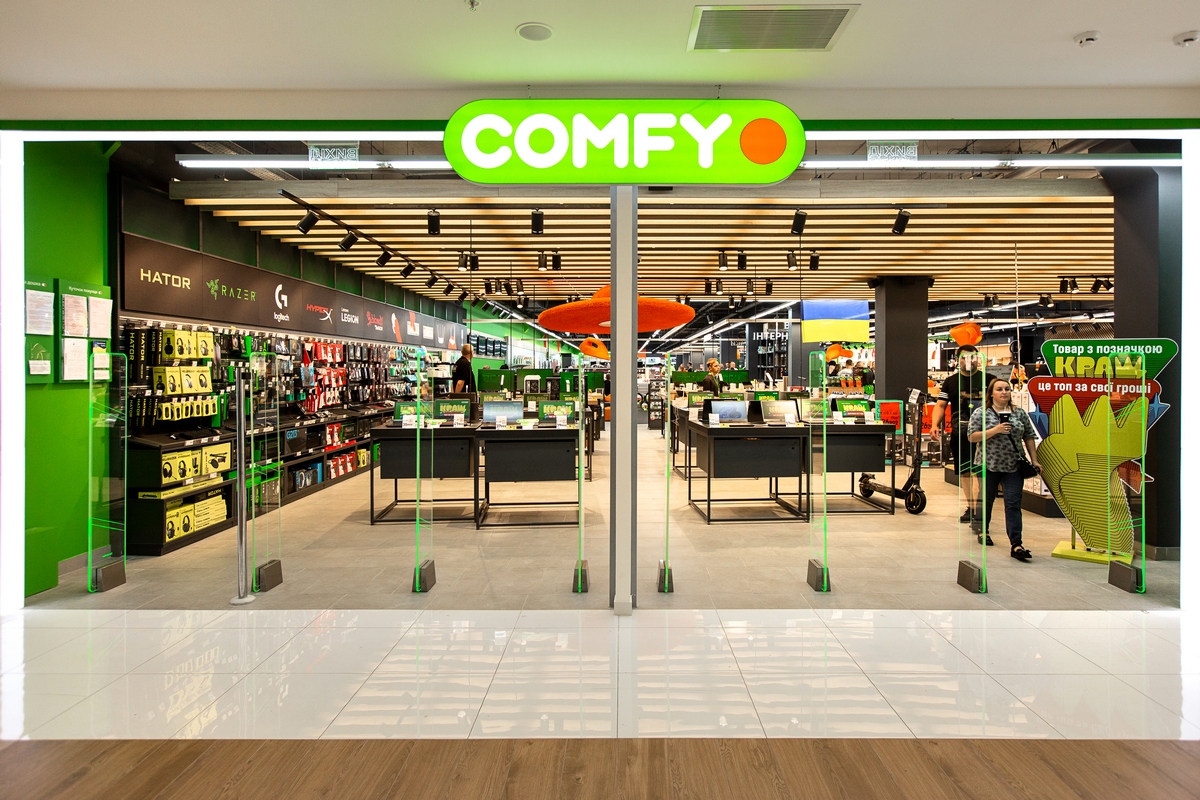 Одним из фокусов сети Comfy, крупнейшего ритейлера бытовой техники и электроники, в прошлом году была экспансия. Сеть открыла 21 новый магазин и возобновила работу трех магазинов, частично разрушенных в начале полномасштабного вторжения. Семь из 24 открытых в прошлом году магазинов – флагманского формата. Статус флагмана у Comfy означает площадь магазина не менее 1000 кв. м, широчайший ассортимент товаров и множество демозон и брендзон ведущих производителей техники и электроники: Apple, Samsung, Philips, DeLonghi, Sony, Bosch, Karcher и других.
