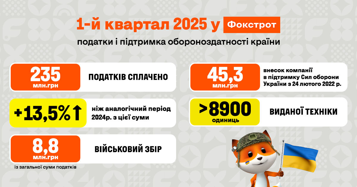 Фокстрот уплатил более 235 млн грн налогов в 1 квартале 2025 года