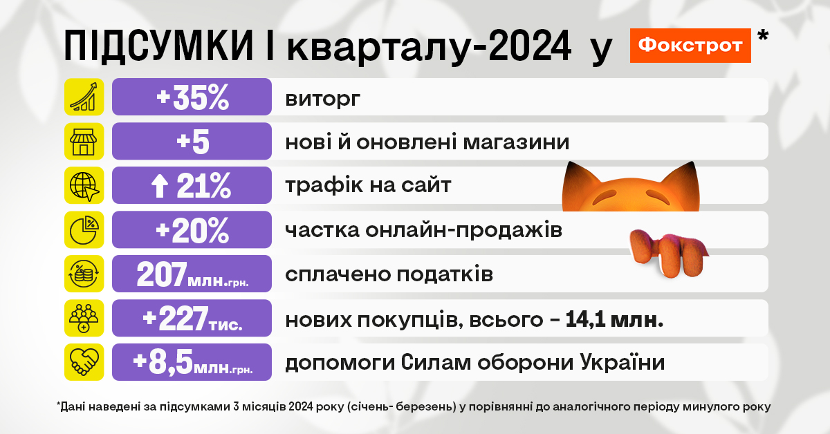Рост товарооборота, пять новых магазинов и 8,5 млн помощи ВСУ: Фокстрот подвел итоги I квартала 2024 года