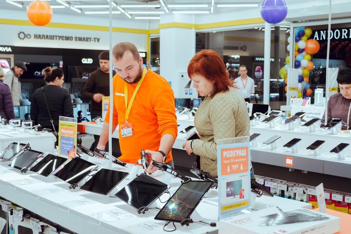 Расширение площади, продуманная планировка и зонирование торгового пространства в новых магазинах позволили увеличить ассортимент товара на витрине и предоставить покупателю еще больше вариантов выбора нужной техники. К примеру, количество «посадочных» мест телевизоров в обновленном Фокстроте в Днепре (общая торговая площадь магазина с 493 увеличена до 872 кв. м) возросло на 30 %, стиральных машин – в 2 раза, а духовок и варочных поверхностей – в 3 раза.
