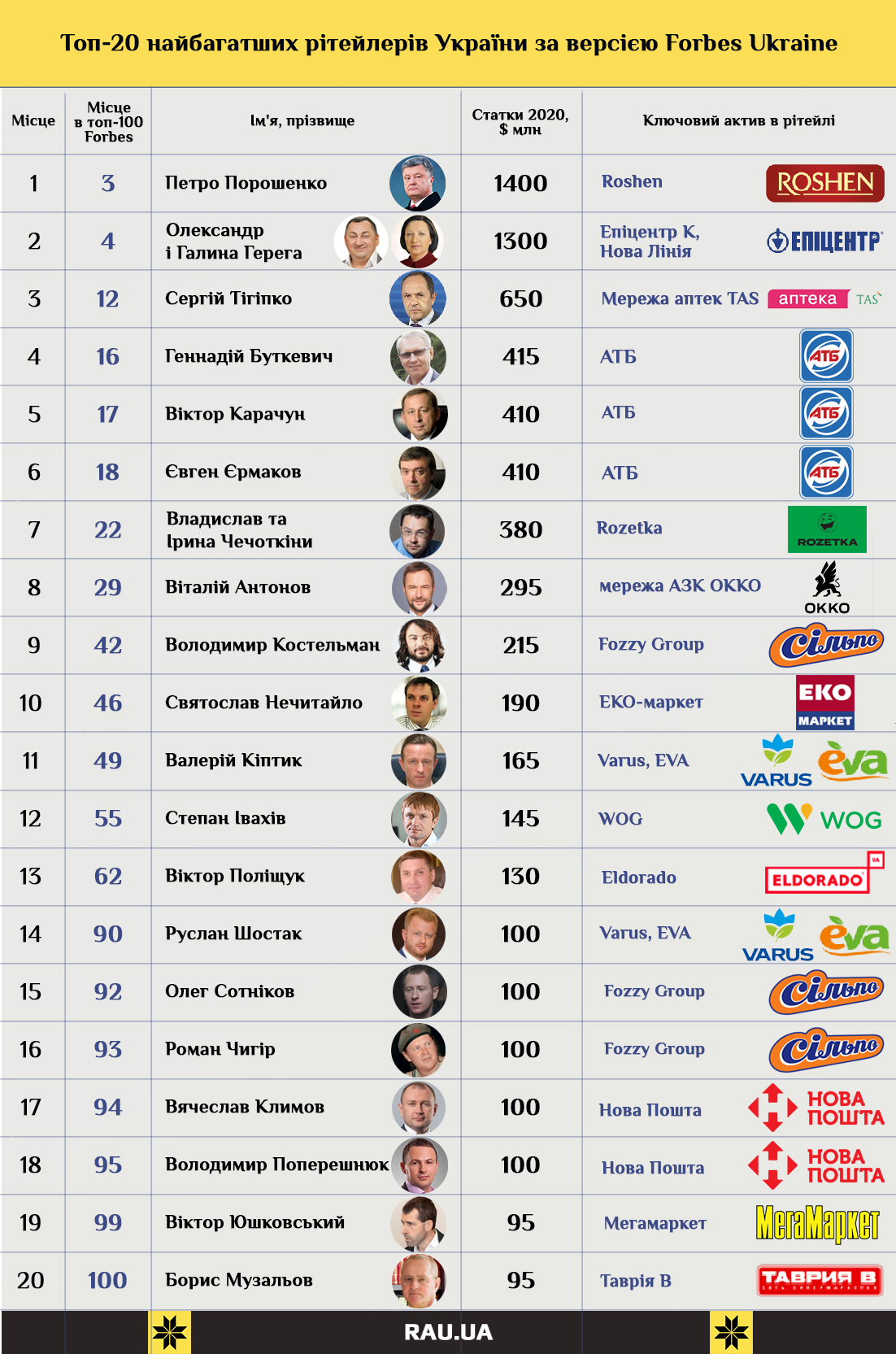 В итоге список самых богатых украинцев, связанных с розничной торговлей, выглядит так: