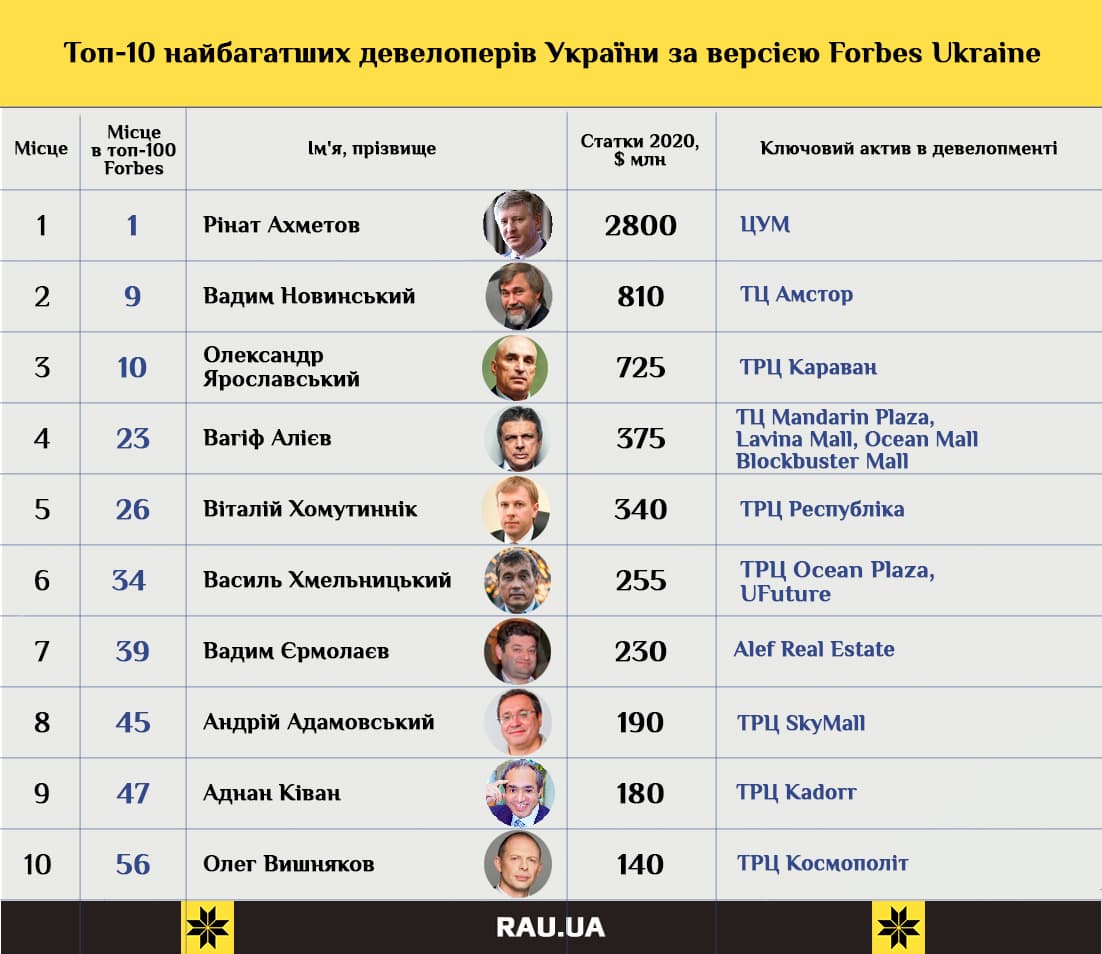 Forbes top-100: самые богатые ритейлеры и девелоперы Украины