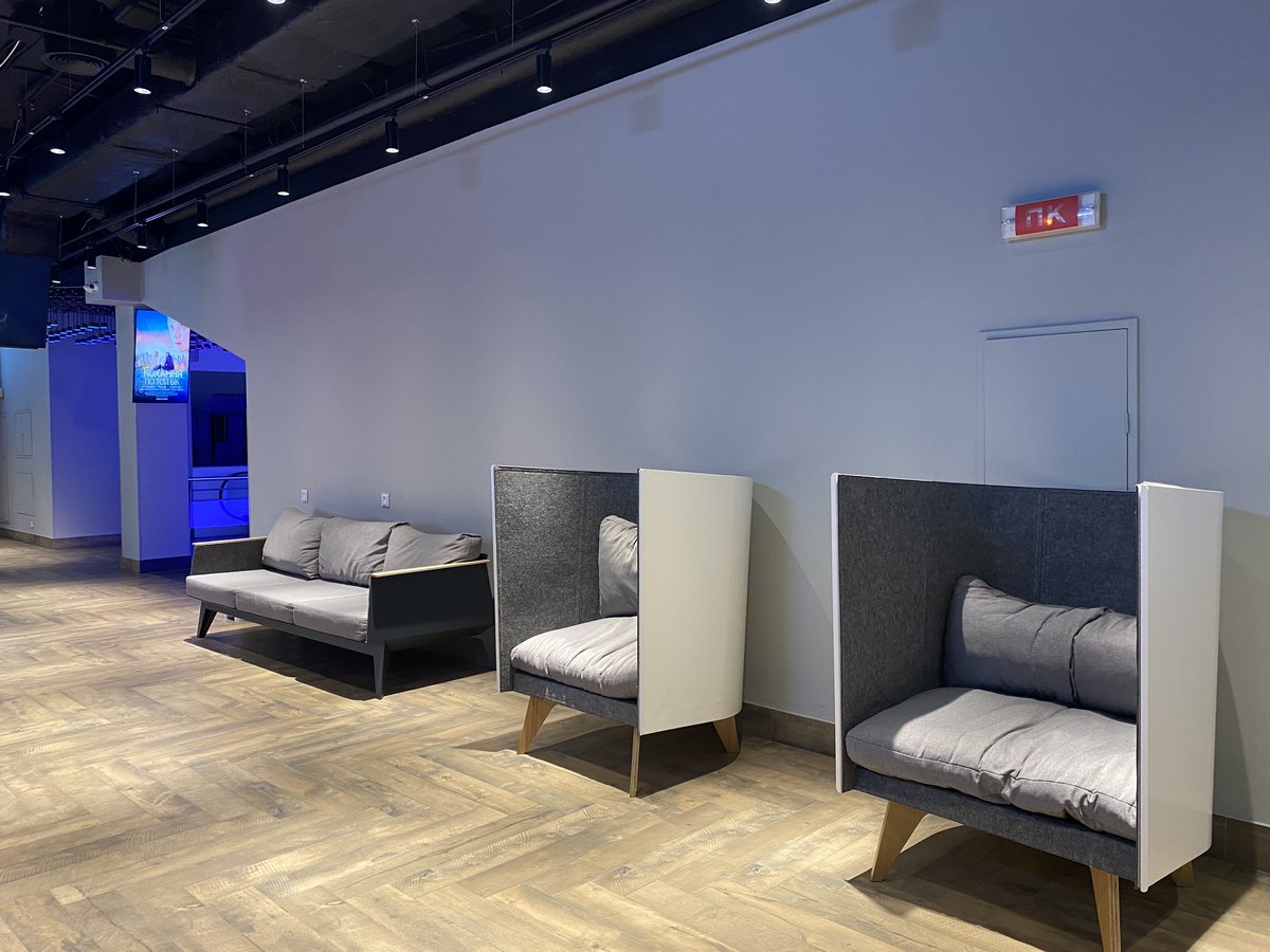 Имеется фотозона, современные санузлы с соблюдением всех санитарных норм, а также большое количество столиков и диванчиков для комфортного ожидания своего сеанса.