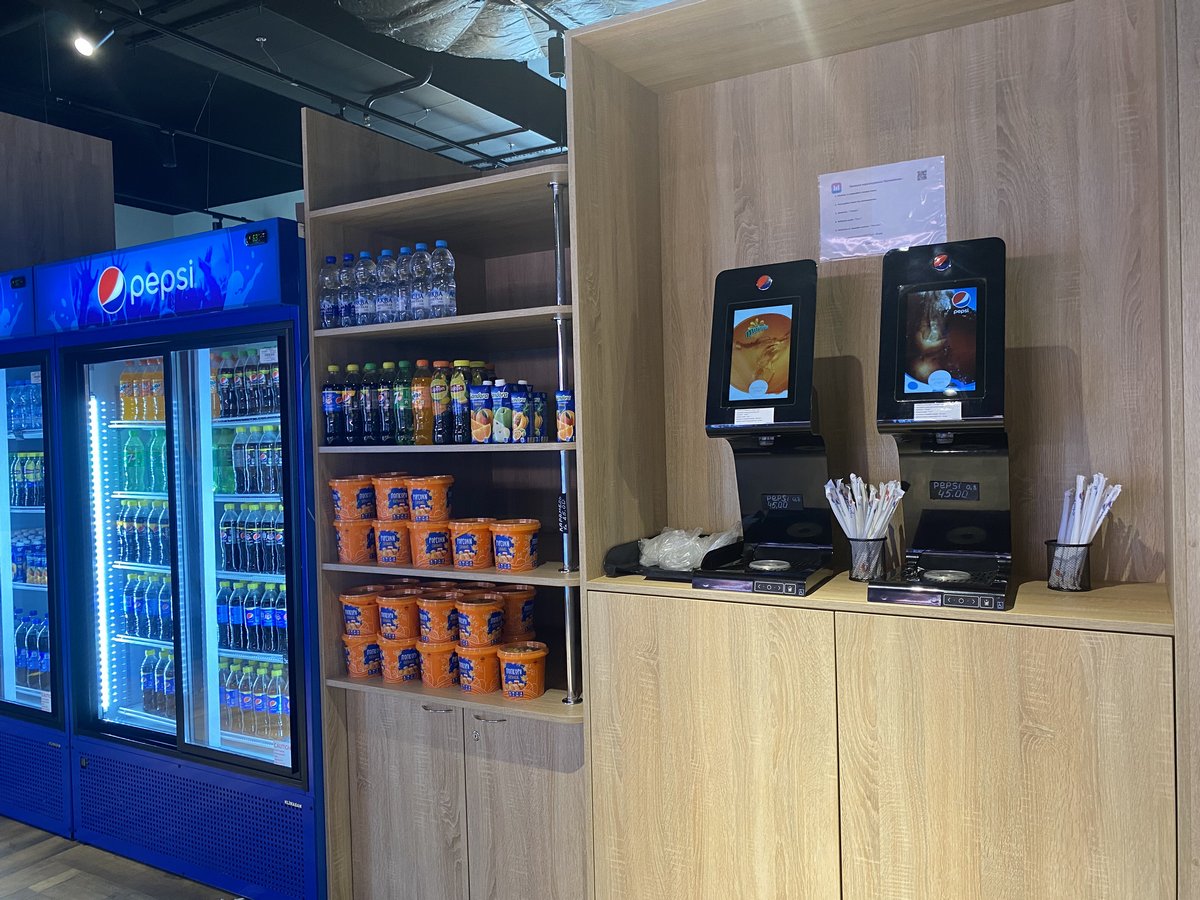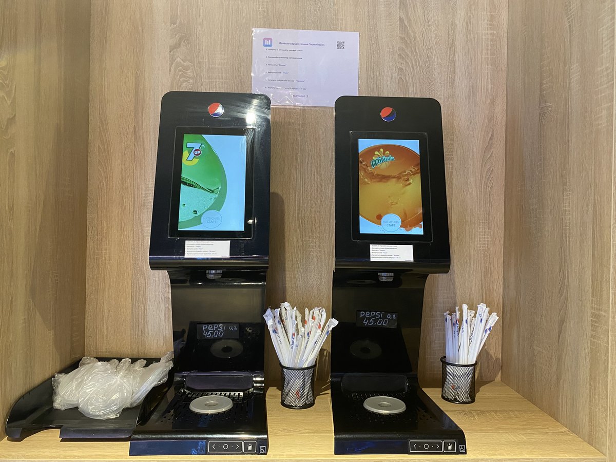 А еще здесь установлены автоматизированные дозаторы Pepsi, для тех, любит напитки на разлив. Рассчитаться можно на кассе любым удобным способом.