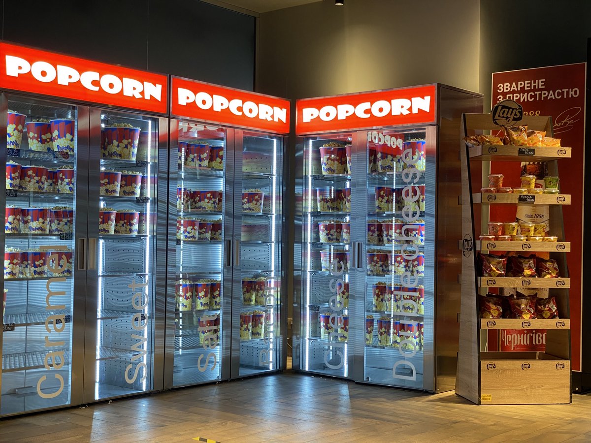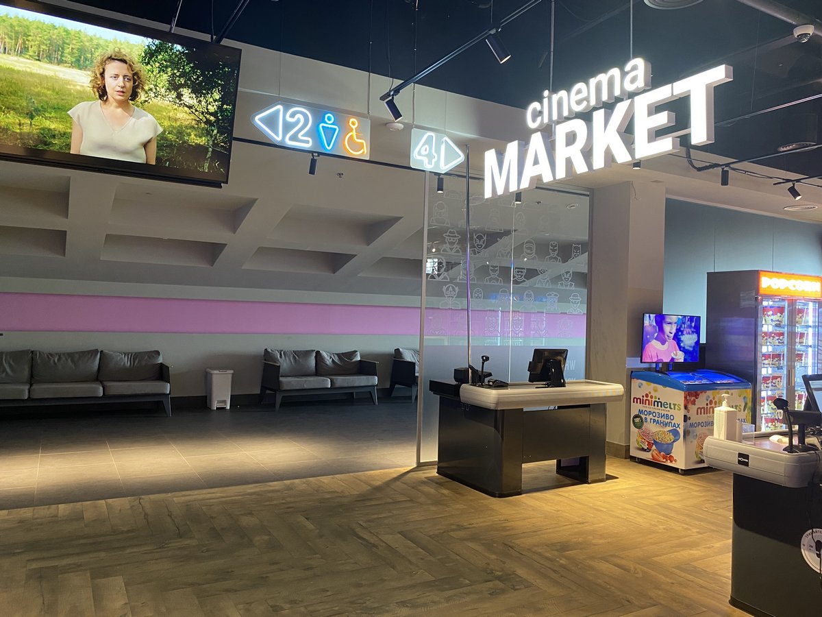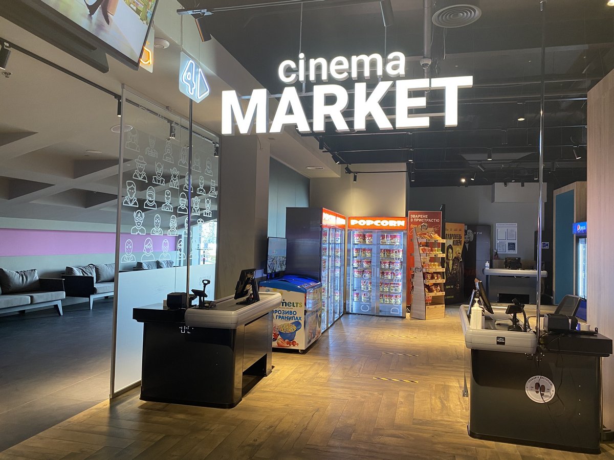 Отдельного внимания заслуживает кино-маркет с попкорном, напитками, снеками и мороженым. Он представляет собой небольшой синема-магазинчик, с тепловыми витринами для попкорна, благодаря чему продукт всегда свежий, ароматный и вкусный.