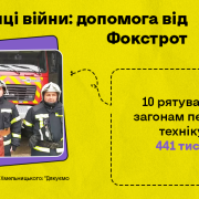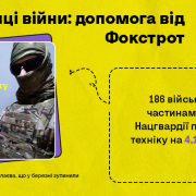 Сеть Фокстрот с первых дней войны присоединилась к помощи армии и украинцам, реализуя собственную благотворительную программу «Поможем нашим». За три месяца войны сумма оказанной помощи в виде бытовой и электронной техники увеличилась до 9,5 млн грн. Проработано более 700 обращений от представителей Вооруженных сил и Нацгвардии, ГСЧС, Национальной полиции, Терробороны, медицинских учреждений, органов местного самоуправления, волонтерских организаций.