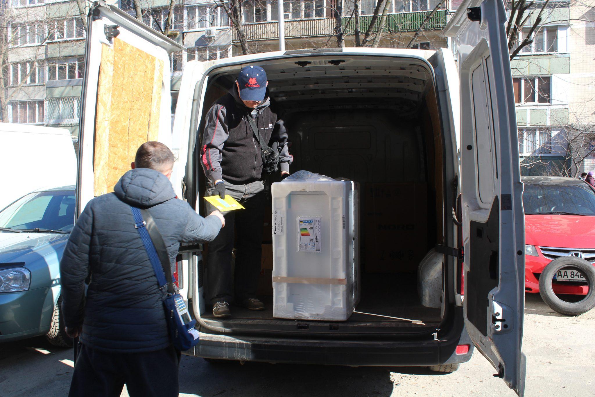Все столичные заказы, собранные за день, формируются на центральном складе, и до 6 утра следующего дня доставляются в распределительный центр, расположенный в Киеве. Там товар перегружается в машины доставки. Они занимаются и пополнением товарных запасов в магазинах, и отвозят технику покупателям по указанным адресам.