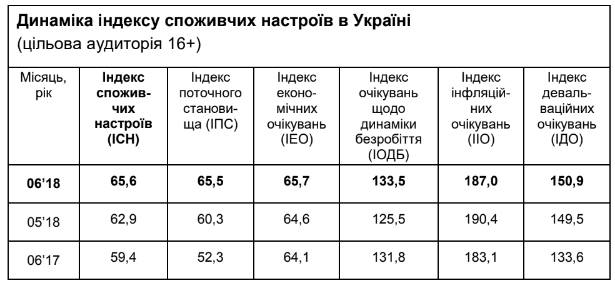 В июне 2018 индекс потребительских настроений составил 65,6, что на 2,7 п больше, чем в мае. Больше всего поменялись индексы текущего личного положения и индекс ожидаемой динамики безработицы. Об этом свидетельствуют данные исследования потребительских настроений в Украине, которое ежемесячно осуществляет GfK Ukraine.