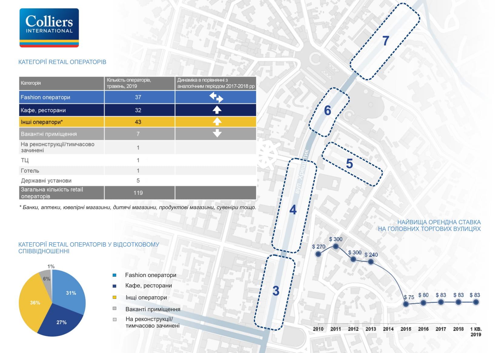 Эксперты международной компании Colliers International (Украина) провели исследование арендаторов на главной торговой улице Киева. В исследовании отражены категории ритейл-операторов и максимальные арендные ставки на главной торговой улице столицы страны.