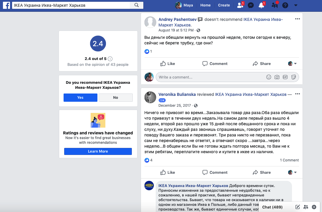 На странице Ikea-market в Facebook аналогичных историй хватает. Есть и положительные отзывы, но их — единицы. Некоторые пользователи, судя по отзывам, в итоге получили свой товар, но пишут об очень сильных задержках доставки.