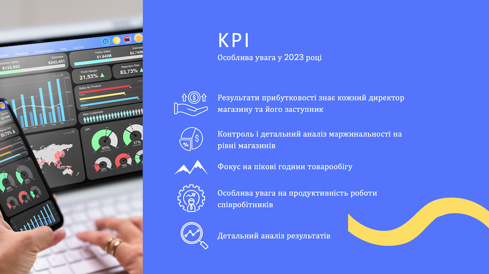 Последние полтора года основными KPI для наших директоров магазинов и их заместителей являются прибыльность и маржинальность магазина, которым они управляют. Каждый месяц региональные руководители вместе с директорами магазинов обсуждают результаты прибыльности, анализируют все цифры и при необходимости принимают необходимые меры. Также у директора магазина есть возможность анализировать ежедневные результаты маржинальности каждой товарной категории, а также маржинальность некоторых брендов.